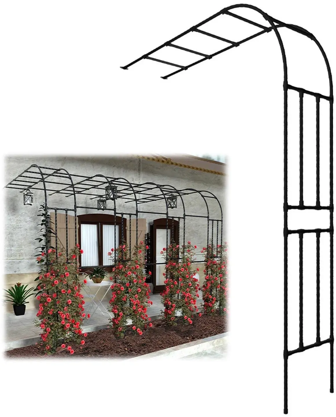 lieferbar-in 6-7 Werktagen bei dirunho Rosenbogen unho Rosenbogen Torbogen Rankhilfe Kletterhilfe Rosenspalier Metall schwarz 182 cm x 222 cm x 120 cm