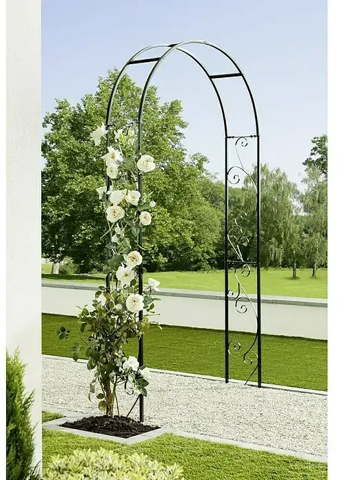 59 /Stück - Kategorie: Pflanzenkästen & Spaliere - Gardol - GTIN:4024506557147 - Der Gardol Rosenbogen Elian besticht durch seine romantische Aufmachung und seine dezente Farbe. Die durchgehenden, zierornamentförmigen Metallstreben, welche sich über dem Rosenbogen verteilen, bieten Kletterpflanzen sehr guten Halt und gute Stabilität. überwachsen mit duftenden Blumen oder saftig, grünen Pflanzen ist der Rosenbogen ein naturbelassener Garteneingang. - 59,00 Euro bei BAUHAUS - gefunden von billiger.de Der DEGAMO Rosenbogen Versailles besticht durch sein stabiles Metallgestell in Hammerschlagoptik und ist eine elegante Ergänzung für jeden Garten. ![]() ![]() DEGAMO Rosenbogen Versailles, stabiles Metallgestell 220x120cm, Stahlrohr 24mm schwarz beschichtet in Hammerschlagoptik