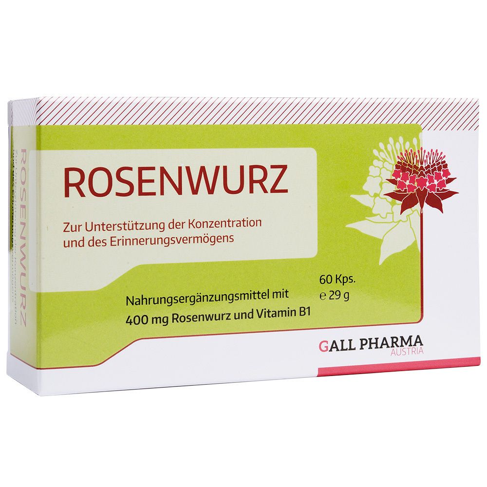 0,35 3 / 1 ct - GALL PHARMA - EAN: 9008124000105 - Nahrungsergänzungsmittel sind kein Ersatz für eine abwechslungsreiche und ausgewogene Ernährung und eine gesunde Lebensweise. Hecht Rosenwurz 400 mg GPHZutaten: Rosenwurz Extrakt (80 %); Kapselhülle: Gelatine; Farbstoff in der Kapselhülle: ; Thiamin... - bei shop-apotheke.com - aus Yadore Produktdaten Für 22.95 Euro erhalten Sie hier 100g Rosenwurz-Wurzel in Pulverform, ideal für individuelle Dosierungen oder die Zubereitung von Tees. ![]() ![]() VITAIDEAL Vegan® ROSENWURZ - Wurzel 100g PULVER - RHODIOLA rosea - Tagesportion 1020mg ROSENWURZWURZEL, natürlich, pflanzlich & ohne Zusatzstoffe, Inklusive Messlöffel.