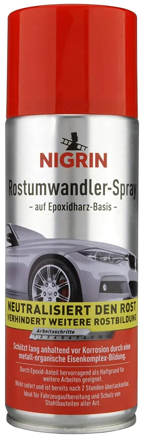 Zustand: Neu - 18,62 € / l - Rostumwandler & -entferner Rostumwandler & Rostentferner - MW Werkstatt Produkte - 50695 - EAN: 4260202492492 - Wandelt Rost auf chemischem Wege in Metall um Versiegelt und schützt die Metallfläche vor weiterer Korrosion Bildet eine überlackierbare Grundierung Ist auch als vorbeugender Rostschutz bei Metallen verwendbar Durchgehärtet nach 12 bis 24 Stunden - Verkäufer: Werkstatt-Produkte im amazon.de Marketplace Das Nigrin Rostumwandler Spray ist eine beliebte und preiswerte Option für die schnelle und effektive Rostbehandlung. ![]() ![]()