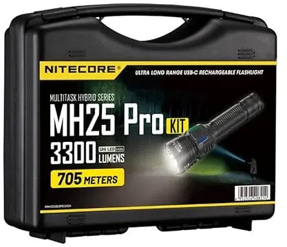 Kategorie: Taschenlampen - Fenix - GTIN:6942870310831 - Hohe Helligkeit und großes Reichweite: Diese leistungsstarke LED sorgt für eine maximale Helligkeit von 2800 Lumen und eine Reichweite von bis zu 1100 Metern. Sie ist perfekt geeignet, um in dunklen Umgebungen ausreichend Sicht zu bieten, ideal für Wanderungen, Suchaktionen und Abenteuer im Freien. Rote und grüne Filter: Im Lieferumfang sind jeweils ein roter und ein grüner Filter enthalten. Diese Filter ermöglichen es, je nach Anforderung des Szenarios die passende Lichtfarbe auszuwählen, was die Sicht bei Nacht entlastet und die Effizienz bei der Erkundung im Freien steigert. SOS- und Blitzmodus: Im Notfall kann der SOS-Modus aktiviert werden, um ein Rettungssignal zu senden. Der Blitzmodus kann schnell aktiviert werden, um potenzielle Gefahren abzuwehren und die eigene Sicherheit zu gewährleisten. Die Bedienung erfolgt über einen Doppeltaster am Ende des Geräts, was eine einfache Handhabung ermöglicht. Wasser- und stoßfest: Die Taschenlampe besteht aus hochwertigem A6061-T6 Aluminium, das hohe Härte und Schlagfestigkeit bietet. Sie hat die Schutzart IP68, was bedeutet, dass sie auch in feuchten Umgebungen oder bei versehentlichem Wasserkontakt normal funktioniert. USB Type-C Ladeanschluss: Die HT18R wird mit einem 5000mAh Akku geliefert und verfügt über einen Standard USB Type-C Ladeanschluss am Hals, was das Laden erleichtert. - 159,90 Euro bei Amazon Marketplace Home - gefunden von billiger.de Ein umfassendes Jagdset mit einer hellen LED-Taschenlampe, integriertem Ladegerät und sowohl Rot- als auch Grünfilter für vielseitige Einsatzmöglichkeiten. ![]() ![]() Nitecore MH25 Pro - 3300 Lumen LED Taschenlampe - Jagdset mit Integriertem Ladegerät, Rotfilter, Grünfilter, Fernschalter RSW1 Pro, Wasserfest, Li-Ion Akku NL2153, 650 Stunden Laufzeit