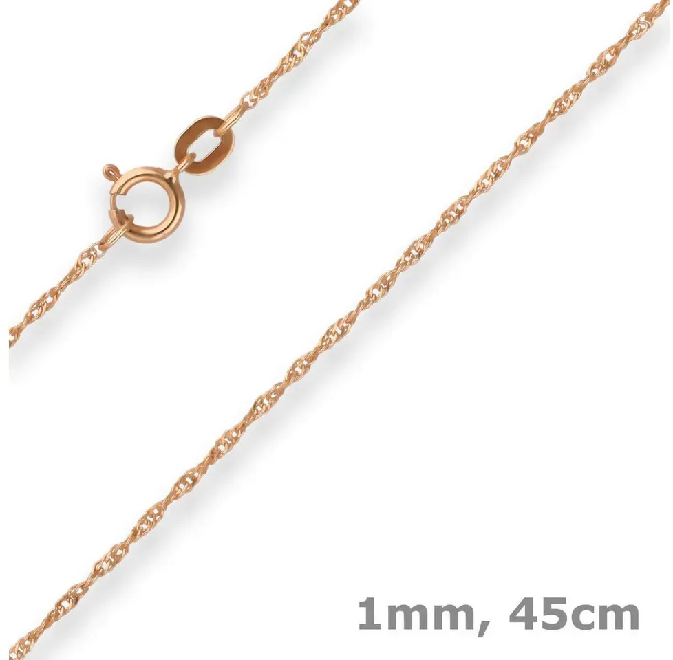 lieferbar-in 2-3 Werktagen bei dirSchmuck Krone Goldkette 1mm Singapurkette aus 375 Rotgold 45cm, Gold 375 goldfarben