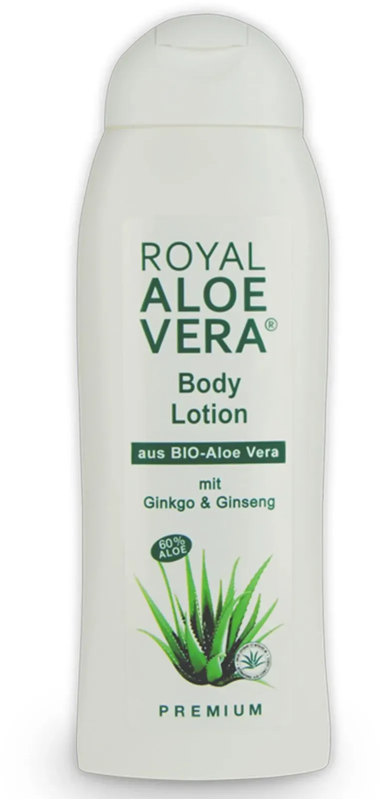 Kategorie: Sonnenpflege - Royal Living Products - GTIN:4055899009623 - Mit 92% Bio Aloe Vera und Schisandra Premium Pflege Gel Zieht schnell ein Geeignet zur Hautpflege und nach der Rasur Für allerhöchste Qualitätsansprüche - 19,99 Euro bei Amazon Marketplace Beauty - gefunden von billiger.de Diese Body Lotion mit Ginko, Ginseng und 60% Bio Aloe Vera pflegt die Haut intensiv und nachhaltig. ![]() ![]() Royal Living Royal Aloe Vera Body Lotion mit Ginko, Ginseng, 60% Bio Aloe Vera, Körper Lotion (1)