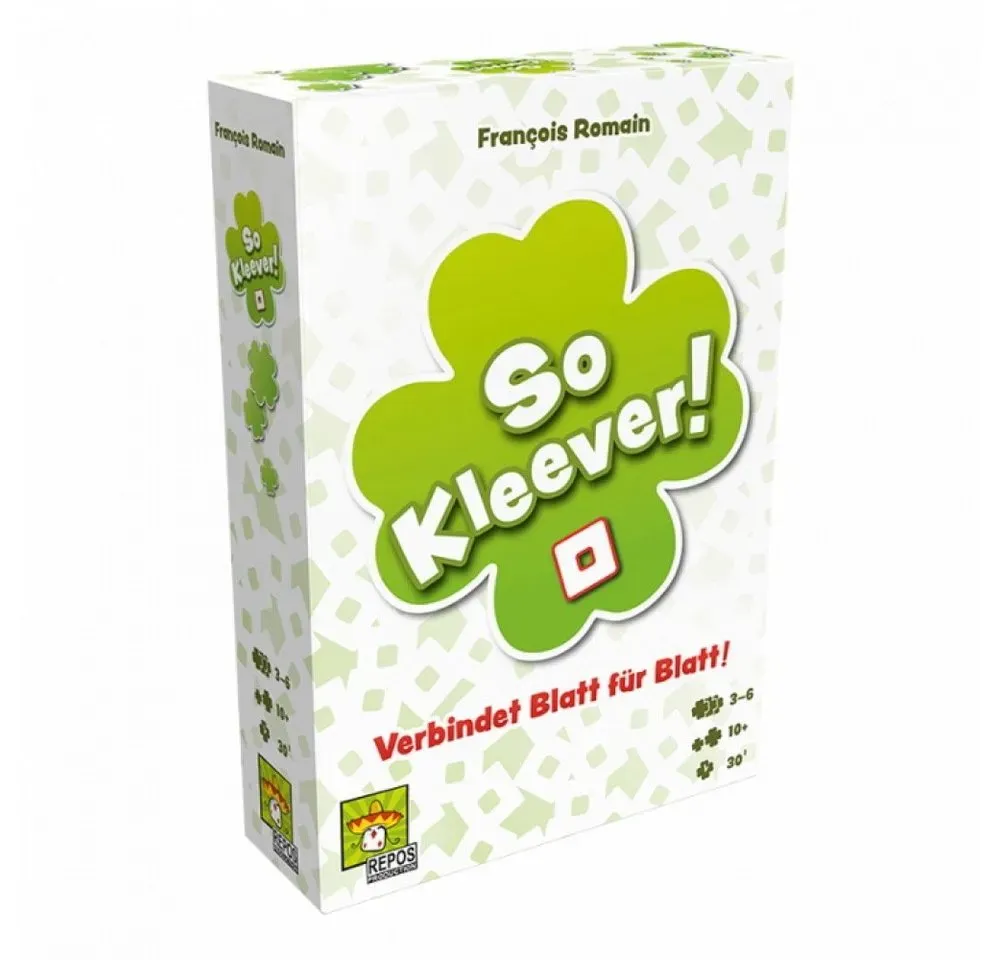 Zustand: Neu - Brettspiele - Repos Production - RPOD0028 - EAN: 5425016925010 - So Kleever ist ein kooperatives Familienspiel, bei dem ihr gemeinsam als Team versucht, euren eigenen Punkterekord wieder und wieder zu schlagen Bei dem unterhaltsamen Partyspiel zieht jeder von euch Stichwortkarten und schreibt die Gemeinsamkeiten verdeckt auf die eigene Kleeblatt-Tafel. Diese Wörter sind eure Hinweise Versucht gemeinsam herauszufinden, welche Stichwörter die Mitspieler haben. Für richtig erratene Stichwortkarten gibt es Punkte, die ihr am Spielende zusammenzählt und in die Punkteliste eintragt Beweist, dass ihr euren eigenen Punkterekord aus der letzten Partie dieses Wortassoziationsspiels übertreffen könnt 3-6 Spieler, Ab 10+ Jahren, 30 Minuten Spielzeit je Partie, Autor: Francois Romain, Spiel in Deutsch - Verkäufer: Charlys International im amazon.de Marketplace ideeundspi el.com ASMODEE RPOD0028 Repos Production So Kleever!