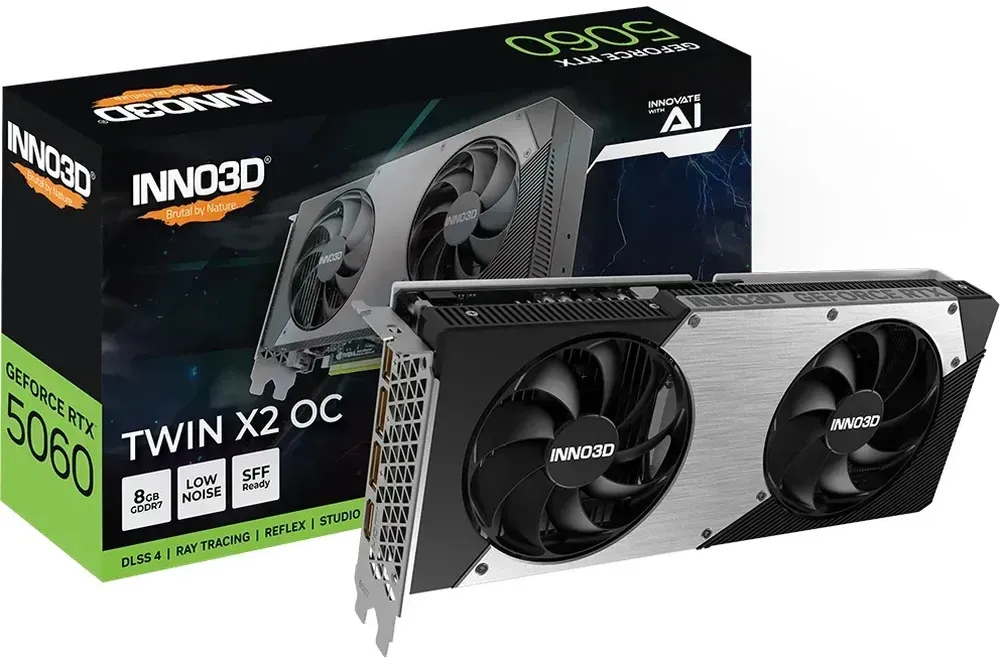 18 Händlerangebote bei billiger.de - Kategorie: Grafikkarten - Inno3D - Grafikkarte, NVIDIA GeForce RTX 5060 Overclocked (Core clock 2280 MHz / Boost clock 2527 MHz), 3840 CUDA Kerne, unterstützt NVIDIA DLSS 4, 8GB GDDR7 (Memory clock 28 GHz) - 128-bit, PCI-Express 5.0 x16 (x8 mode), 3 x DisplayPort 2.1a / 1 x HDMI 2.1b Verbindungen, Stützen NVIDIA G-Sync, 1 x 8-Pins Netzanschluss, empfohlenes Netzteil: 550 Watt, kurze Länge: 225mm, PCI-Port-Breite: 2.1 slots, Inno3d Twin X2 low noise kühler - mit Lüftermodus mit Null U/min (bei niedriger Temperatur), modell-Nr: N50602-08D7X-195070N - GTIN:8886307701152 Diese Zotac Solo-Variante ist eine kompakte und kostengünstige Option für kleinere Gehäuse. ![]() ![]() Zotac GeForce RTX 5060 Solo 8 GB GDDR7