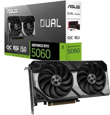 Zustand: Neu - Grafikkarten - Gigabyte - GV-N5060EAGLEMAX OC-8GD 1.0 - EAN: 4719331356729 - Mit der NVIDIA Blackwell-Architektur und DLSS 4 Powered by GeForce RTX 5060 Ausgestattet mit 8 GB GDDR7 und 128-Bit-Schnittstelle WINDFORCE-Kühlsystem Verstärkte Struktur für zusätzliche Stabilität - bei Amazon.de Diese ASUS Dual-Grafikkarte ist eine zuverlässige und preiswerte Option für die RTX 5060. ![]() ![]() ASUS DUAL GeForce RTX 5060 OC 8GB DUAL-RTX5060-O8G Grafikkarte GDDR7 DP/HDMI