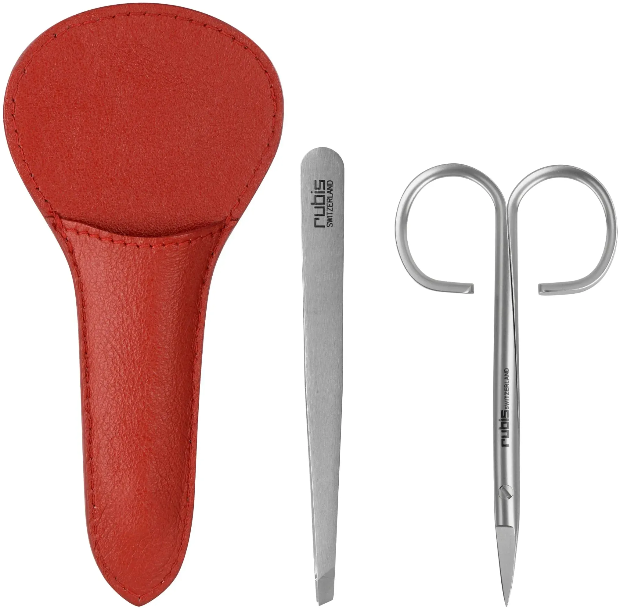 Auf Lager Versand durch AmazonRubis Maniküre Set mit Nagelschere und Pinzette zum Augenbrauen zupfen - Nagelset klein 2 teilig - Nagelpflegeset und Pinzetten Etui
