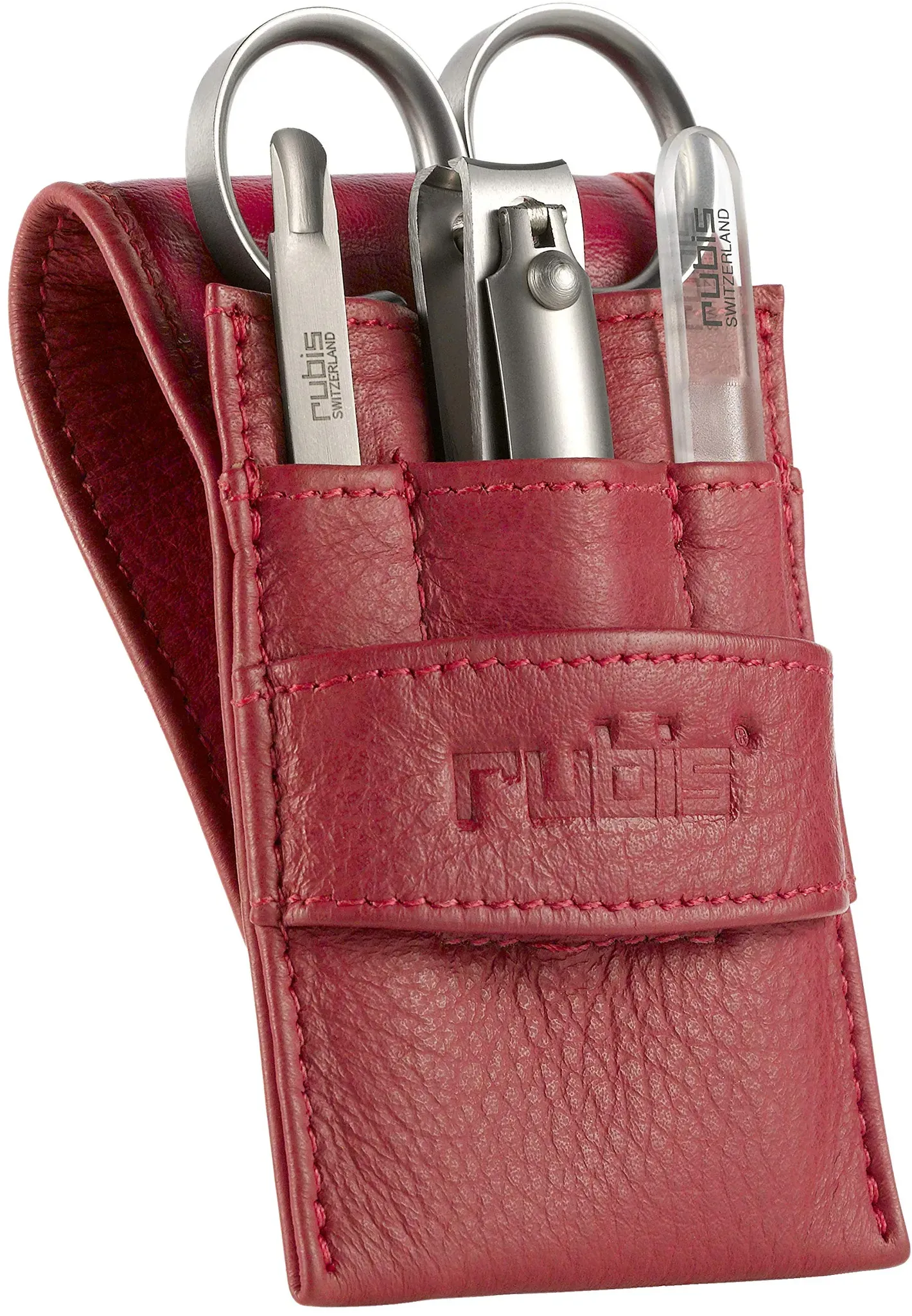 Auf Lager Versand durch AmazonRubis Maniküre Set - Reise Nagelpflegeset mit Lederetui (rot) - Nagelhautschere, Nagelknipser, Nagelreiniger / Nagelhautschieber, Glasnagelfeile