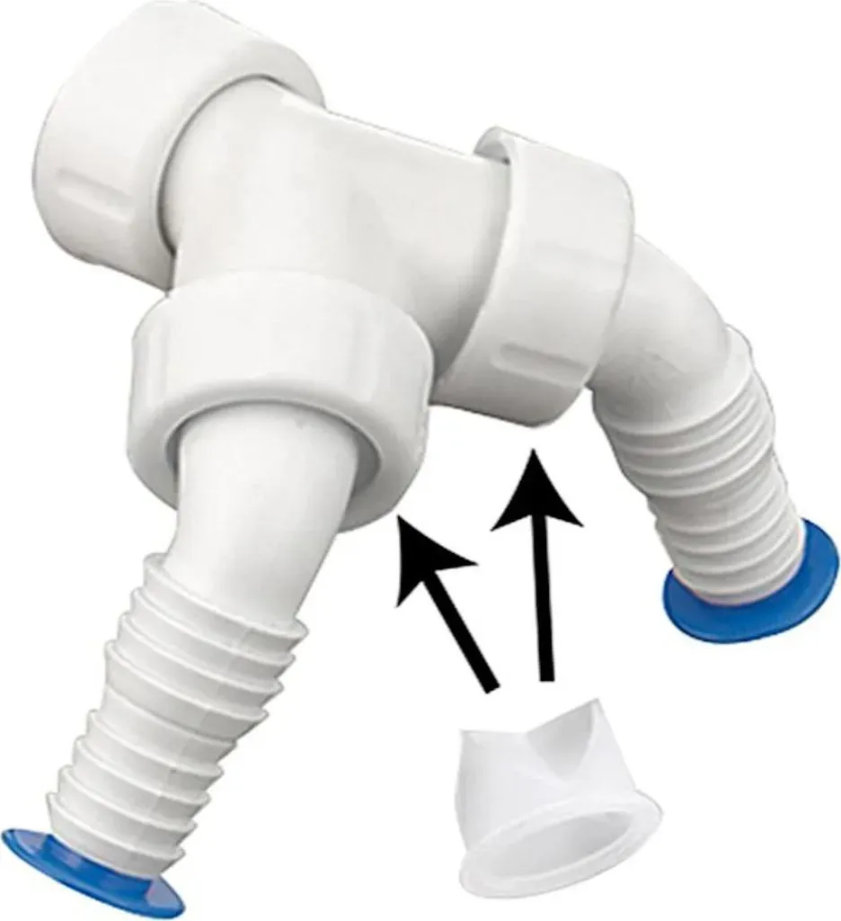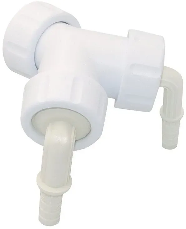 Ablaufprogramm Badezimmerausstattung - EAN:4002545029139 - HAAS Save Kombi-Doppel-Schlauchtülle 2913 mit Stopfen und Scheiben Rückstausystem öffnet nur bei ablaufendem Wasser komplett mit Dichtung/Dichtscheibe/Blindstopfen und mit 1' Mutter und Kombi-Anschlüssen 3/4' auf 1' dicht bis 15 bar - gefunden von Kelkoo Skybad.de HAAS Kombi-Doppel-Schlauchtülle 2913 37 mm, 1', Polypropylen, weiß, mit Rückflussverhinderer