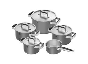 Wohnen Tischkultur und Küchenutensilien Kochutensilien Große Töpfe Töpfe & Pfannen - EAN:3272341024855 - Staub Cocotte rund Basilikumgrün 24cm 40509-356-0 Ein kleiner Farbtupfer in Ihrer Küche ist der Schmortopf in Basilikumgrün von Staub. Die La Cocotte-Serie hat viele Schmortöpfe in der Palette, von denen Sie diese runde Cocotte begeistern wird. Das Hauptaugenmerk der Verarbeitung liegt auf einem schlichten Design gepaart mit höchster Funktionalität. Der Durchmesser von 24 cm und das Fassungsvermögen von 3,8 l sind ideal für den privaten Haushalt, wobei der Topf darüber hinaus 15 cm Platz in der Höhe bietet. Diese gusseiserne Cocotte besitzt zahlreiche Vorteile, die Sie entdecken sollten. In erster Linie begeistern ihre aufwendigen Beschichtungen. Im Inneren befindet sich eine mattschwarze Emaillierung, die den Schmortopf im Vergleich zu rohem Gusseisen schnell gebrauchsfertig macht. Zusätzlich wird ein sehr guter Schmoreffekt erreicht, der sich sogar über die Nutzungsdauer hinweg verbessert. Die Kombination aus Gusseisen und Emaille eignet sich ideal, um Hitze oder Kälte zu speichern. - gefunden von Kelkoo Dieses Zwilling Kochtopfset ist eine hochwertige und langlebige Investition für jede Küche, die durch ihre Backofeneignung und Kratzfestigkeit überzeugt. ![]() Zwilling Kochtopfset Zwilling Pure , Grau , 5-teilig , 16 cm,20 cm,16 cm , rund , backofengeeignet , Kochen, Töpfe, Topfsets