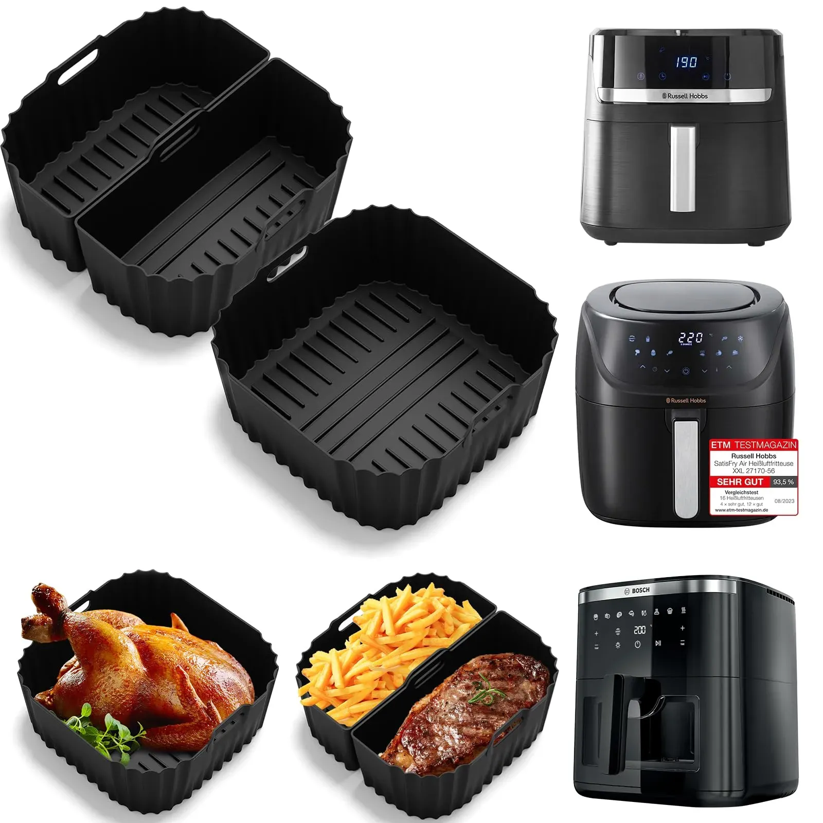 Auf Lager Versand durch AmazonSilikonform Heißluftfritteuse Zubehör für Russell Hobbs 2 Kammern 9L Airfryer, 2 Stück Russell Hobbs Heißluftfritteuse 9L, COSORI Dual Zone 8,5 L,Ninja Foodi MAX 9,5L Air Fryer Silikon Einsatz Zubehör