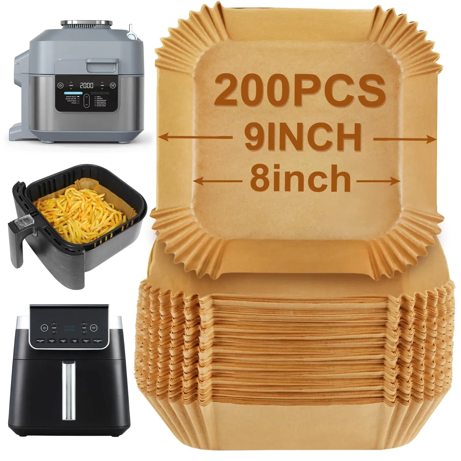 Auf Lager Versand durch AmazonBYKITCHEN 200 Stück Heißluftfritteuse Backpapier für Russell Hobbs XXL 8L/Cecotec/Cosori 6 L/5.5L, Groß Airfryer Backpapier, Heißluftfritteuse Zubehör, kompatibel mit Philips 6.2L und Mehr
