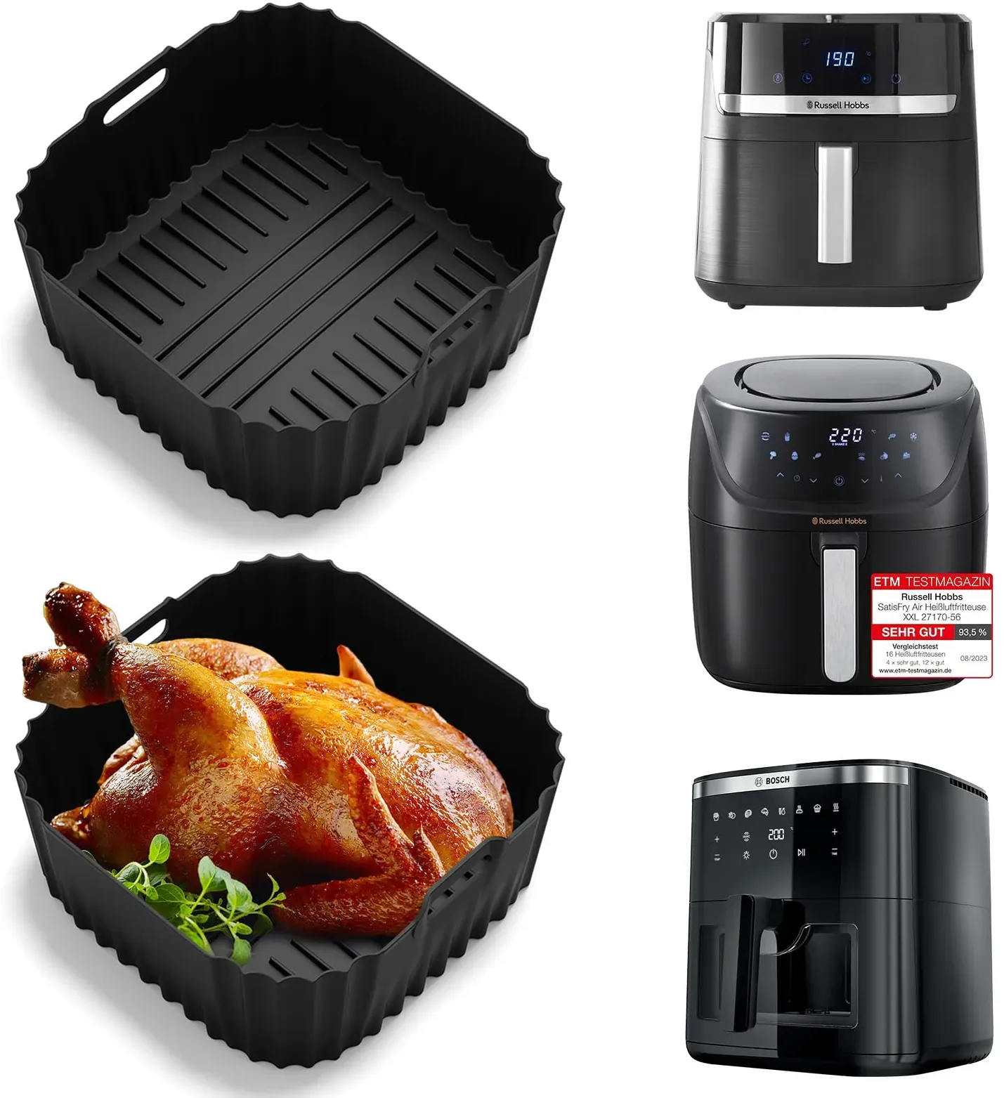 Auf Lager Versand durch AmazonSilikonform Heißluftfritteuse für Russell Hobbs Air Fryer L 4L (27160-56), 2 Stück Airfryer Silikonform für Russell Hobbs L 4,3L (27610-56) Wiederverwendba Silikon Einsätze, spülmaschinenfest