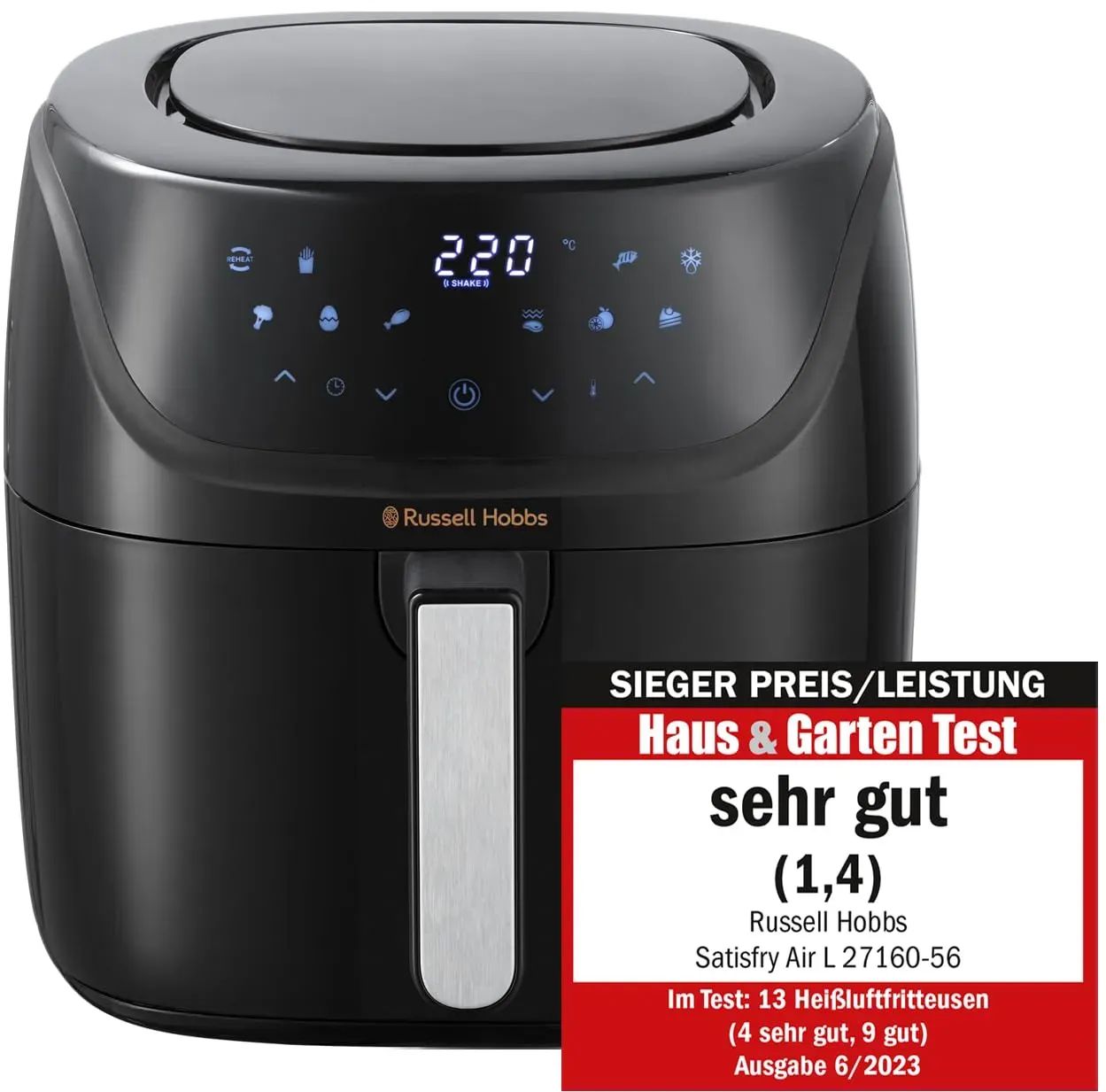 16 Händlerangebote bei billiger.de - Kategorie: Fritteusen - Russell Hobbs - Mit gutem Gewissen kochen - wenig oder kein öl erforderlich, 4 Liter Heißluftfritteuse mit schneller Luftzirkulation bis zu 220 C Leicht zu reinigen - Antihaftbeschichteter Frittierkorb und Einsatz für knusprig-krosse Ergebnisse sind spülmaschinenfest* (getestet mit 100 Spülmaschinengängen) 7-in-1 Funktionen: Heißluftfrittieren, Grillen, Backen, Braten, Dörren, Aufwärmen und Auftauen Leicht zu reinigendes, digitales Touchscreen-Bedienfeld mit 10 voreingestellten Programmen: Pommes Frites, Fisch, Eier, Huhn, Gemüse, Backen, Grillen, Dörren, Auftauen, Aufwärmen Erinnerung zum Wenden des Gargutes (Signalton nach der Hälfte der Garzeit), variable Temperaturregelung für ein gleichmäßiges Garergebnis, Zeiteinstellungen und automatischer Sicherheitsabschaltung - GTIN:5038061147421 ![]() ![]() Russell Hobbs - 27160-56 Heißluftfritteuse eBay 4L, 7-in-1, 220°C, Touchscreen