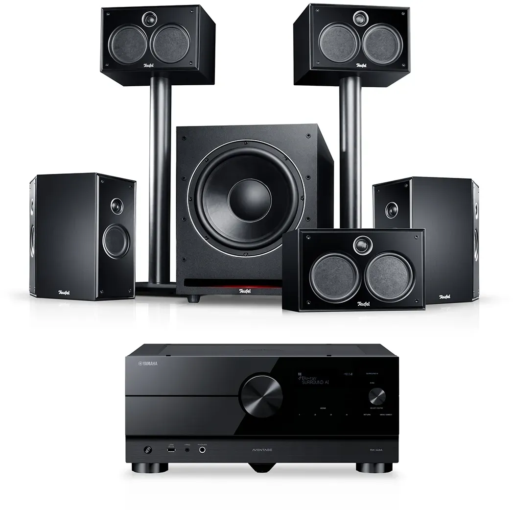Kategorie: Surround-Systeme - Teufel - GTIN:4048945589521 - Das System 6 '5.1-Set' ist mit dem System 6 THX '5.2-Set' identisch, nur dass es mit einem Subwoofer kommt. Es eignet sich damit perfekt für Räume bis 35 m2. Der Yamaha AV-Receiver RX-A4A unterstützt auch Dolby Atmos, so kannst du beispielsweise unsere Reflekt Speaker jederzeit nachrüsten. - 2399,99 Euro bei teufel DE - gefunden von billiger.de ![]() kaufland.d e Yamaha RX-A4A, 110 W, 7.2 Kanäle, Surround, 165 W, 32-bit/384kHz, Bananenstecker