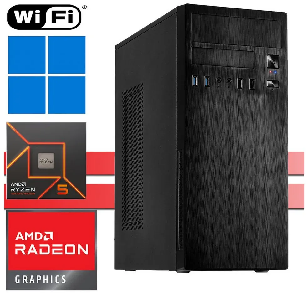 Verfügbarkeit: lieferbar-in 3-4 Werktagen bei dir - 669.00€/1Stk - Kategorie: PCs - X-HARDWARE - GTIN:0725844180267 - Allgemein Lieferumfang , Stromkabel übriges Montagematerial Sicherungsinformation auf Desktop hinterlegt, Betriebssystem / Software Betriebssystem , Windows 11 Professional, Installationsart Betriebssystem , vorinstalliert, Software und Apps , Libre Office, Prozessor Hersteller Prozessor , AMD, Serie Prozessor , Ryzen 5, Nummer Prozessor , 7600, Bauart Prozessor , Hexa-Core, Anzahl Prozessorkerne , 6, Taktfrequenz Prozessor , 3,80 GHz, Taktfrequenz Prozessor maximal , 5,10 GHz, Prozessorkühler , Wraith Stealth AMD-Kühler, Speicher Typ Arbeitsspeicher , DDR5, Speicherkapazität Arbeitsspeicher (RAM) , 16 GB, Typ Festplatte , M.2 SSD HDD, Anschluss Festplatte , M.2 SATA, Speicherkapazität Festplatte HDD , 0 GB, Speicherkapazität Festplatte SSD , 512 GB, Hersteller Arbeitsspeicher , G. Skill Aegis oder Crucial, Grafikkarte Hersteller Grafikkarte , AMD, Modell Grafikkarte , AMD Radeon Graphics, Serie Grafikkarte , AMD Radeon Graphics, Anschlüsse Typ Anschluss , 1x HDMI 4x USB-A 2.0 1xGb LAN 1x DVI 6x USB-A 3.0, Typ Cardreader , kein Cardreader, Anzahl Cardreader , 0, Typ USB-Anschluss , USB-A, Anzahl USB-Anschlüsse , 10, Anzahl USB-2.0-Anschlüsse , 4, Anzahl USB-3.0-Anschlüsse , 6, Typ HDMI-Anschluss , HDMI 2.1, Anzahl HDMI-Anschlüsse , 1, Typ LAN-Anschluss , RJ-45-Ethernet, Stromversorgung Art Stromversorgung , internes Netzteil, Hersteller Netzteil ... Ein günstiger Business-PC mit Ryzen 5 7600 und Windows 11, perfekt für Büroanwendungen. ![]() ![]() ONE Business PC AO037 Business-PC (AMD Ryzen 5 7600, Keine Grafikkarte, 16 GB RAM, 512 GB SSD, Luftkühlung) schwarz