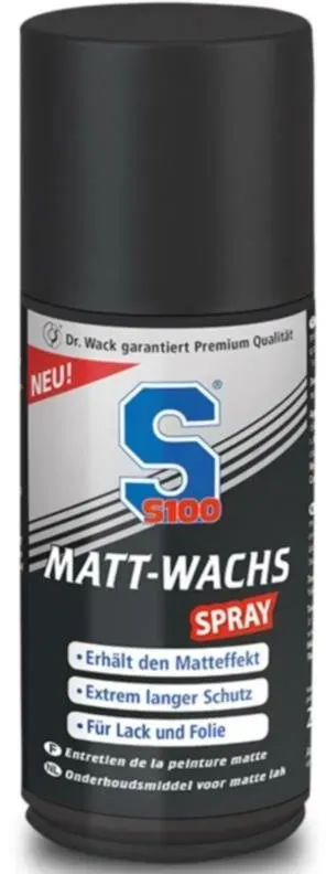 Verfügbarkeit: 1-2 Tage - 55,96 €/l - Kategorie: Reinigungsmittel - S100 - GTIN:4006539024605 - * Schützt extrem lang vor Umwelteinflüssen, wie Regen und UV-Strahlung usw. * Lässt Wasser abperlen. * Wirkt wasser-, öl- und schmutzabweisend. | Artikel: S100 Matt-Wachs Spray 250 ml - 13,99 Euro bei FC Moto DE - gefunden von billiger.de ![]() ![]() S100 Matt-Wachs Spray Sprühflasche