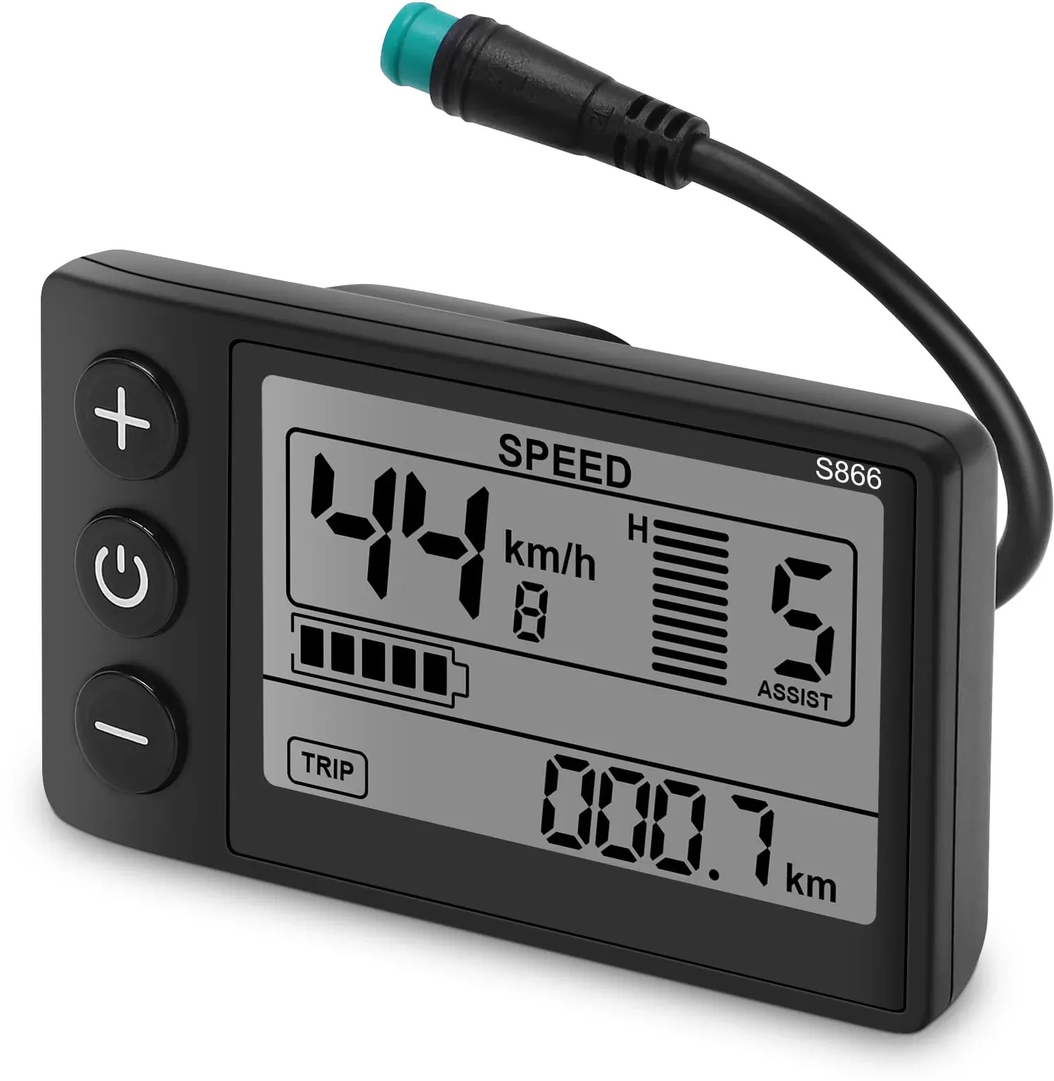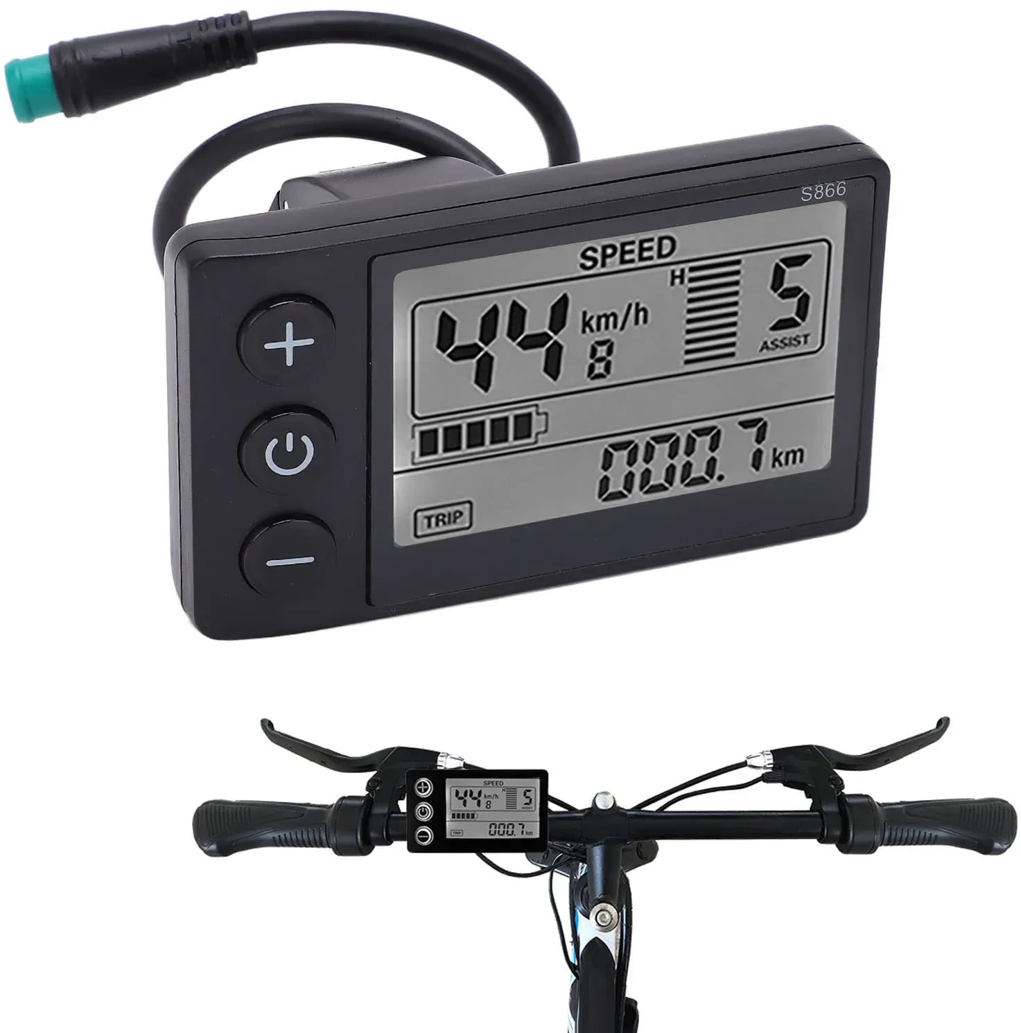 Gewöhnlich versandfertig in 3 bis 4 TagenYunir Elektrofahrrad S866 LCD-Display-Messgerät, ABS 24 V 36 V 48 V IP65 Wasserdichtes Fahrrad-Bedienfeld mit SM-Stecker, Fahrradcomputer-LCD-Display, für 22,2 Mm 0,9 Zoll Lenker