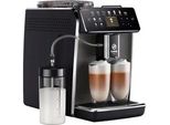 Saeco - EAN: 8720389003479 - Der Philips Saeco GranAroma Kaffeevollautomat SM6580/50 bereitet eine Vielzahl an weltbekannten Kaffeespezialitäten auf Knopfdruck zu - ob Espresso, Cappuccino oder Latte Machiatto. Durch den CoffeeMaestro lässt sich das Kaffeeerlebnis einfach personalisieren und nach den individuellen Wünschen gestalten. Mit seinem Aroma Extract-System sorgt das Gerät für ein optimales Gleichgewicht zwischen Brühtemperatur und Aromaentfaltung. Dank seiner LatteDuo-Funktion lassen sich gleich zwei Kaffeegetränke zubereiten. Dabei bietet der LattePerfetto einen festen Milchschaum mit einer feinen Textur. Um Kalkablagerungen zu verhindern, besitzt der Philips Saeco GranAroma Kaffeevollautomat SM6580/50 einen AquaClean Filter., Top-Feature: Top-Features: CoffeeMaestro: Personalisieren Sie Ihr Kaffeeerlebnis, indem Sie ein gewünschtes Geschmacksprofil (Delicato, Intenso, Forte) für Ihr Getränk auswählen. Der Kaffeevollautomat passt die Brüheinstellungen wie Kaffeestärke, Kaffeemenge und Vorbenetzungszeit an, um Ihnen den richtigen Geschmack zu bieten., Allgemein: Weitere Vorteile: Coffee Equalizer : Gestalten Sie Ihren Kaffee so,wie Sie es möchten, indem Sie die Stärke, die Kaffee- und Milchmenge, die Temperatur und die Milchschaumstärke anpassen und einen zusätzlichen Shot hinzufügen., Das Aroma Extract-System sorgt für ein optimales Gleichgewicht zwischen Brühtemperatur und Aromaentfaltung. Die Wassertemperatur wird zwischen 90 C und 98 C gehalten und ... ![]() SAECO Kaffeevollautomat ''GranAroma SM6580/50'', grau, schwarz, B:26,2cm H:44,8cm T:38,3cm, Kaffeevollautomaten, 14 Kaffeespezialitäten, 4 Benutzerprofilen und TFT Display, Kaffeevollautomat