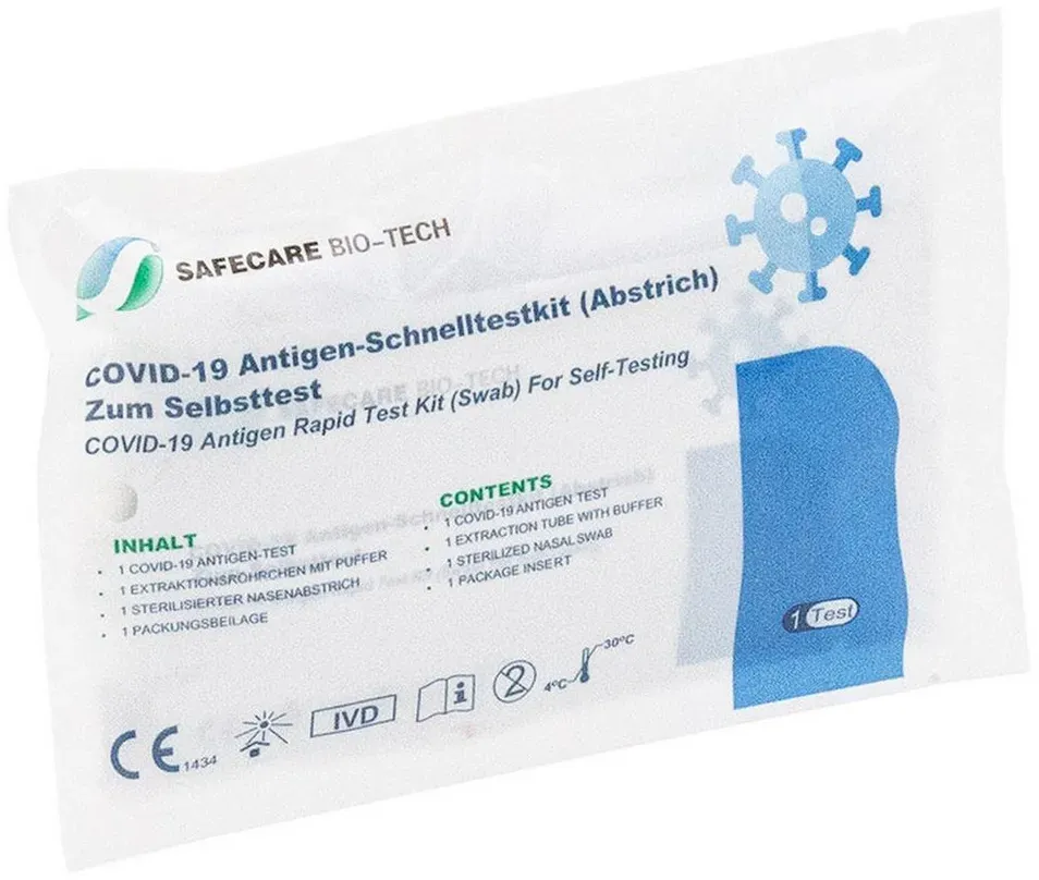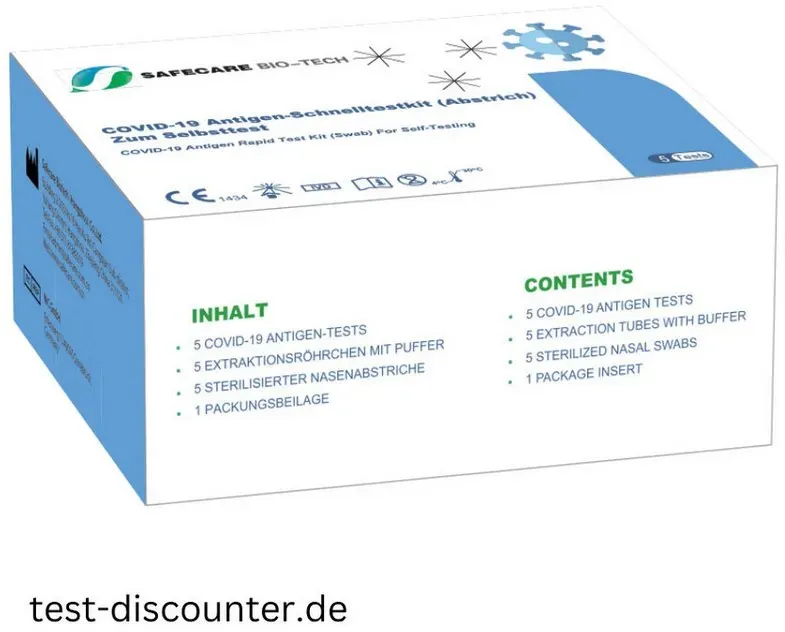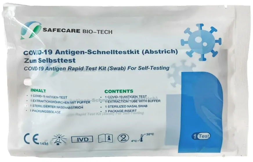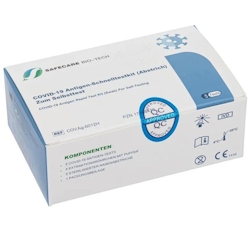 Kategorie: Medizinischer Bedarf - Safecare - GTIN:6974246460048 - Safecare Covid-19 Antigen nasal Schnelltest Laientest 1Stk. - 1,65 Euro bei Amazon Marketplace Health & Personal Care - gefunden von billiger.de Dieses 5er-Pack ist mit 2,28 Euro eine kostengünstige Lösung für den mehrmaligen Gebrauch oder kleine Haushalte. ![]() ![]() Safecare COVID-19 Antigen-Schnelltestkit 5 St.