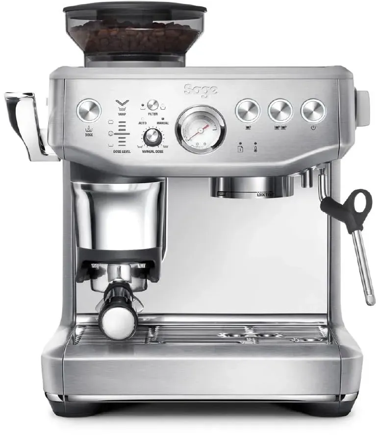 Sage - EAN: 9355973097917 - Der Sage Barista Express beeindruckt mit Edelstahl und dosiert Kaffee, den er dann im Filterträger für Sie direkt drückt. Dies macht eine Tasse Kaffee zu einem Genuss. Der integrierte Bohnenschneider und die Handhabung erledigen die Arbeit für Sie. Beispielsweise bietet die Espressomaschine die richtige Menge an gemahlenem Kaffee für ein oder zwei Espressos. Sie wählen aus 25 verschiedenen Schleifpositionen, die Ihren Kaffee mahlen. Dann drücken Sie dies mit dem Tamper, sodass Sie immer ein richtiges und konsistentes Ergebnis erhalten. Praktisch, denn so bleibt Ihre Theke sauber. Die Kolbenmaschine befeuchtet zuerst den Kaffee, bevor dieser unter hohem Druck extrahiert wird. Mögen Sie Milchspezialitäten? Dann verwandeln Sie den Espresso dank des leistungsstarken Dampfrohrs in einen cremigen Cappuccino. Die erstklassige Verarbeitungsqualität dieser Kolbenmaschine verwendet nachhaltige Teile. Mit dem schweren Edelstahlgehäuse und den Anti-Rutsch-Füssen bleibt die Kaffeemaschine stabil auf Ihrer Theke, während Sie Kaffee zubereiten, im Gegensatz zu einer vollautomatischen Espressomaschine. - bei galaxus.de - aus Yadore Produktdaten Für diejenigen, die das klassische Edelstahl-Design bevorzugen, bietet coolblue.de hier ein solides Angebot. ![]() ![]() Sage Barista Express Impress Brushed Stainless Steel