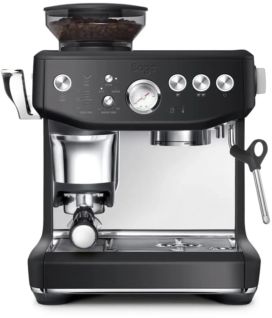 19 Händlerangebote bei billiger.de - Kategorie: Espressomaschinen - Sage - Die Sage Barista Express liefert dank der 4-Schlüssel-Formel Third Wave-Kaffeespezialitäten für zu Hause, mit dem Impress Puck System die die manuelle Espressozubereitung einfacher als je zuvor macht Intelligentes dosieren: Das intelligente Dosiersystem, lernt bei der Arbeit und berechnet automatisch die Dosierung des frisch gemahlenen Kaffees auf Basis der letzten Mahl Präzisionsmessung: Die Präzisionsmessung korrigiert die nächste Dosierung, womit das Rätselraten der manuellen Espressozubereitung entfällt Assistiertes tampern: Das assistierte Tampern mit 7°-Barista-Twist-Finish und einem konstanten Druck von 10 kg simuliert das Tampern durch einen professionellen Barista. Das Ergebnis ist ein schön polierter Puck und eine saubere Tamperfläche 25 Mahlgrad-Einstellungen: Integriertes Präzisions-Kegelmahlwerk mit 25 mahlgrad-einstellungen ermöglicht die Feinabstimmung auf das gewünschte Extraktions- und Geschmacksergebnis Thermocoil-Präzisionsheizsystem: Das Thermocoil-Heizsystem mit PID-Regelung erzeugt dank der präzisen digitalen Steuerung von Temperatur, Durchflussmenge und Kontaktzeit jedes Mal einen großartigen Kaffee Von Hand aufgeschäumter Mikro-Milchschaum: Der leistungsstarke Dampfstab bereitet einen perfekten Mikro-Milchschaum zu, der den Kaffeegeschmack verfeinert und die Grundlage für die Latte Art bildet Einstellungen: 25 präzise Mahlgradeinstellungen, Voreinstellung ... Für 629 Euro erhalten Sie die Sage Barista Express Impress in Schwarzer Trüffel, ein Modell mit intelligenter Dosierung. ![]() ![]() Sage - The Barista Express Impress - Kaffeemaschine mit manuellem Milchaufschäumer & integriertem Mahlwerk - Intelligente Dosierung, 25 Mahlgradeinstellungen - Schwarzer Trüffel