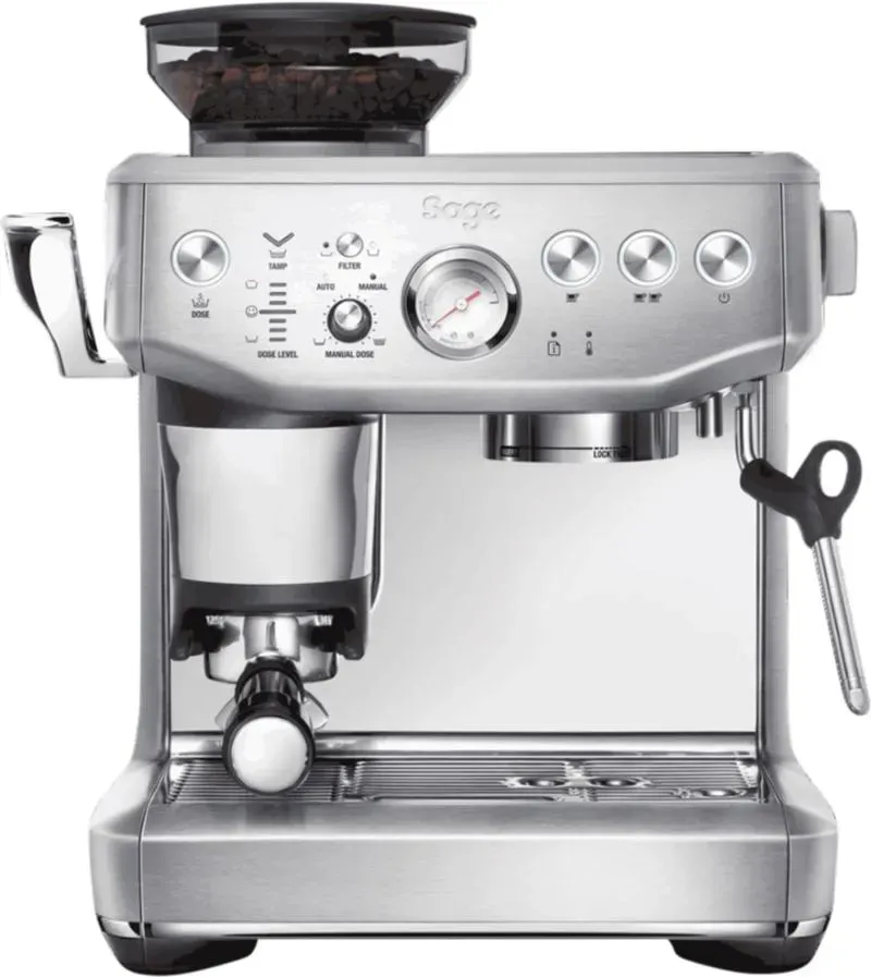 Kategorie: Espressomaschinen - Sage - GTIN:9355973097917 - Der Sage Barista Express beeindruckt mit Edelstahl und dosiert Kaffee, den er dann im Filterträger für Sie direkt drückt. Dies macht eine Tasse Kaffee zu einem Genuss. Der integrierte Bohnenschneider und die Handhabung erledigen die Arbeit für Sie. Beispielsweise bietet die Espressomaschine die richtige Menge an gemahlenem Kaffee für ein oder zwei Espressos. Sie wählen aus 25 verschiedenen Schleifpositionen, die Ihren Kaffee mahlen. Dann drücken Sie dies mit dem Tamper, sodass Sie immer ein richtiges und konsistentes Ergebnis erhalten. Praktisch, denn so bleibt Ihre Theke sauber. Die Kolbenmaschine befeuchtet zuerst den Kaffee, bevor dieser unter hohem Druck extrahiert wird. Mögen Sie Milchspezialitäten? Dann verwandeln Sie den Espresso dank des leistungsstarken Dampfrohrs in einen cremigen Cappuccino. Die erstklassige Verarbeitungsqualität dieser Kolbenmaschine verwendet nachhaltige Teile. Mit dem schweren Edelstahlgehäuse und den Anti-Rutsch-Füssen bleibt die Kaffeemaschine stabil auf Ihrer Theke, während Sie Kaffee zubereiten, im Gegensatz zu einer vollautomatischen Espressomaschine. - 633,60 Euro bei Galaxus.de - gefunden von billiger.de Dieses Angebot ist eine gute Wahl für eine Sage Barista Express Impress in Black Stainless Steel zu einem attraktiven Preis. ![]() MaxiCoffee .de
