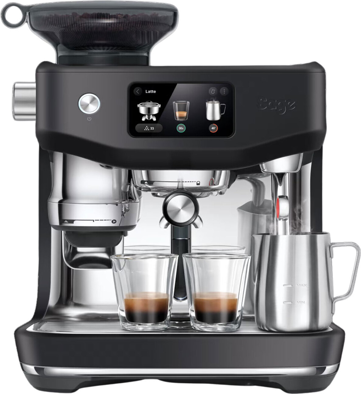 Sage - EAN: 9355973120080 - Mahlen, Dosieren Und Tampern Sie Automatisch In Den Professionellen 58-Mm-Siebträger Und Lassen Sie Sich Von Der Barista Guidance Bei Der Zubereitung Von Spezialitätenkaffee Zuhause Schritt Für Schritt Anleiten. Auto Milq Erzeugt Automatisch Samtigen Mikro-Milchschaum, Der Dank Der Einstellungen Für Kuhmilch Sowie Soja-, Mandel- Und Hafermilch Optimiert Ist. Auto Queue Startet Die Milchaufschäumfunktion Automatisch, Wenn Die Extraktion Abgeschlossen Ist. Ihre Vorprogrammierten Caf -Favoriten Sind über Das Neue, Reaktionsschnelle Display Wählbar, Einschließlich Der Neuen Lieblingskaffees Cold Brew Und Cold Espresso. - bei mediamarkt.de - aus Yadore Produktdaten Dieses Angebot ist eine der günstigsten Optionen für eine neue Sage Oracle Jet in Black Truffle von einem spezialisierten Händler. ![]() Sage the Oracle Jet Black Truffle