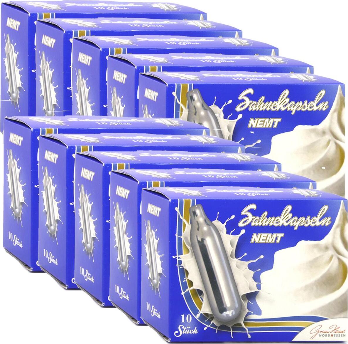 0.37 /1Stk - Kategorie: Sonstige Küchenhelfer - Vaily - GTIN:0618455301346 - Allgemein Zubehör passend für , Sahnebereiter und Sahnesyphons, Anzahl Teile , 100 St., Technische Daten Ergiebigkeit , 500 l, Product Compliance Gefahrenhinweise , H270 H280 H336, Produktdetails Einsatzbereich , Sahnebereiter Sahnesyphon, Hinweise Sicherheitshinweise , P101 P102 P220 P370+P376 P410+P403 P501, Signalwort , GEFAHR, - 36,99 Euro bei OTTO - gefunden von billiger.de Dieses Angebot von NEMT mit 100 N2O Sahnekapseln ist eine preiswerte Großpackung für alle gängigen Sahnespender. ![]() kaufland.d e 100 x 8g N2O NEMT Sahnekapseln für alle Sahnespender