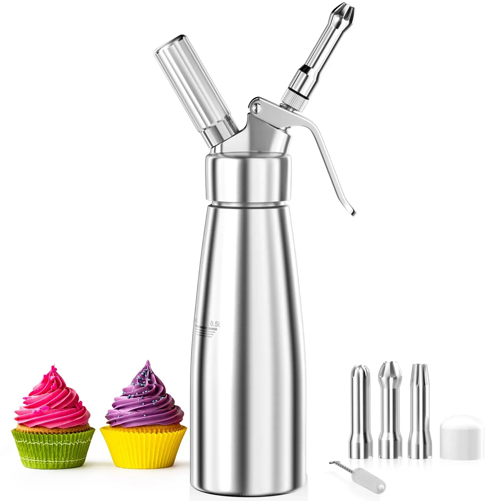![]() ![]() ASelected 500 ml Professionelle Sahnespender Aluminium, Sahnesyphon Aluminium mit 3 Edelstahl Deko-Düsen und 1 Reinigungbürste, Auslaufsicherer sahnesiphon für die Zubereitung von Schlagsahne