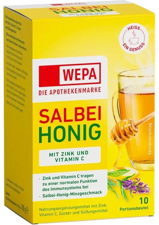 21 Händlerangebote bei billiger.de - Kategorie: Arzneimittel - H&S Tee-Gesellschaft mbH & Co. KG - H&S Bio Salbei-Honig Zubereitung: 1 Filterbeutel für eine Tasse mit frischem, sprudelnd kochendem Wasser übergießen. Ziehzeit: 8 Minuten Zutaten: Bio Weiße Hibiskusblüten, Bio Brombeerblätter süß, Bio Zitronenverbene, Bio Süßholzwurzel, Bio Zichorienwurzel geröstet, Bio Salbeiblätter (8 %), Bio äpfel, Bio Zitronengras, Bio Limetten-öl, Bio Zitronen-öl, Bio Hagebutten, Bio Zitronenschalen, Bio Steviablätter, Bio Honiggranulat (0,5 %), Bio Lavendelblüten. Wichtiger Hinweis: Immer mit sprudelnd kochendem Wasser aufgießen und gemäß Zubereitungsempfehlung (s. o.) ziehen lassen. Nur so erhalten Sie ein sicheres Lebensmittel. Aufbewahrung: Kühl und trocken lagern. - GTIN:4150174424983 - PZN:17442498 Dieses Pulver bietet eine praktische Möglichkeit, ein heißes Salbei-Honig-Getränk mit Vitamin C und Zink zuzubereiten. ![]() ![]() Wepa Apoday heisser Salbei+Honig+Vitamin C+Zink Pulver 100 g