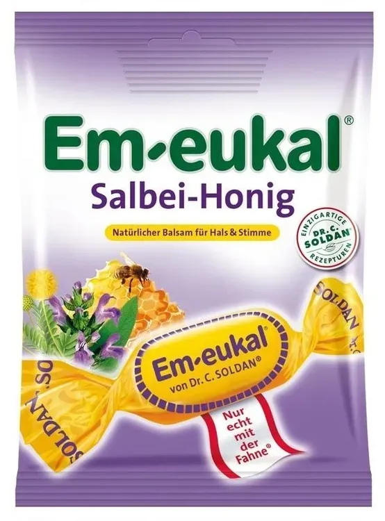 14 Händlerangebote bei billiger.de - Kategorie: Arzneimittel - Dallmann's Pharma Candy GmbH - DALLMANNS Kirsch Salbei Bonbons m.Vitamin C+Honig 37 g - GTIN:4011932250018 - PZN:19077838 Diese zuckerhaltigen Salbei-Honig-Bonbons sind eine beliebte und bewährte Option für den kleinen Genuss zwischendurch. ![]() ![]() Dr. C. Soldan GmbH Em-eukal Salbei Honig zuckerhaltig