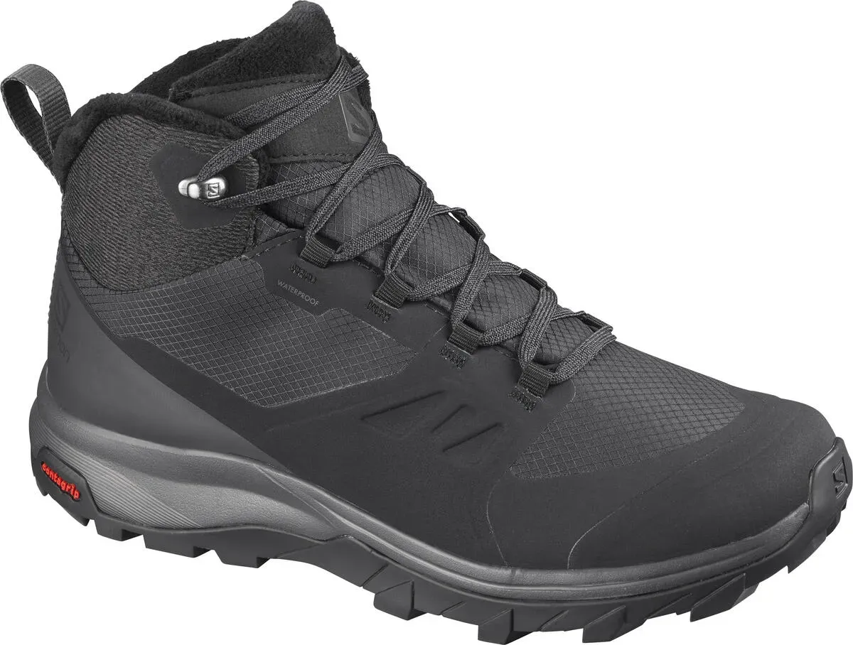 Der angezeigte Preis könnte seit dem letzten Update gestiegen sein - EAN: 0193128079147 - Stabiler Outdoorwinterstiefel »OUTsnap CSWP M« von Salomon. Weiches, wärmendes Innenfutter. Zuglasche an der Ferse. Robuste Sohle mit CONTAGRIP®-Technologie. Knöchelumschließende Form für guten Halt. Hochwertiges, wasserdichtes Obermaterial aus... - Zustand: NEW - bei BAUR Versand - gefunden von Buycentral Dieses Herrenmodell in Schwarz ist mit 214.97 Euro das teuerste Angebot und bietet möglicherweise erweiterte Funktionen oder eine spezielle Edition. ![]() ![]() Salomon Outsnap ClimasalomonTM Waterproof (wasserdicht) Herren Winterschuhe, Schwarz (Black/Ebony/Gum1a), 49 1/3 EU - 49 1/3 EU