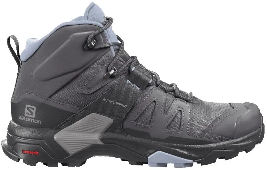 3 Händlerangebote bei billiger.de - Kategorie: Wanderschuhe - Salomon - Mach dich bereit, mit dem überarbeiteten X ULTRATM 4 GORE-TEX kraftvoll bergauf und bergab zu laufen. Er ist so wendig wie ein Trailrunningschuh, aber bietet dazu die Stabilität, den Grip und den wasserdichten Schutz, den du für technisches Gelände brauchst. Mit einem neuen Chassis schützt der Schuh jetzt den empfindlichen Knöchelbereich noch besser, ohne die Bewegungsfreiheit einzuschränken.Contagrip MA ist auf eine große Oberflächen-Vielfalt ausgelegt. Es bietet einen ausbalancierten Mix aus Geometrie und einer Gummimischung für sicheren Halt auf nassen, trockenen, harten oder lockeren Oberflächen und dauerhafte Haltbarkeit.ADV-C Chassis. Das Chassis schützt die äußeren Knöchel und gibt extra Stabilität. Der vordere Teil des Schuhs ist weich und flexibel, um sich deinen Laufschritten geschmeidig anzupassen.Active SupportTM. Die beweglichen Seitenflügel halten den Fuß am Platz, passen sich an Form und Volumen des Fußes an und begleiten seine Bewegung.Chevron-Stollen. Stollendesign, das sich tief in den Untergrund gräbt und multidirektionellen Grip bietet. Es verbessert die Trittfestigkeit auf weichem Untergrund wie Matsch oder lockerem Geröll.EnergyCell. Ein leistungsstarker EVA-Schaumstoff, der Stoßdämpfung bietet.Synthetisches Obermaterial. Synthetisches Obermaterial sorgt bei Outdoor-Aktivitäten für hervorragende Haltbarkeit und hohen Schutz.Wasserabweisend. Das in einem Spezialverfahren behandelte ... Dieses Damenmodell in Grau für 104.95 Euro ist ein solides Angebot im mittleren Preissegment. ![]() ![]() Salomon Damen X Ultra 4 Mid GTX grau 43.3