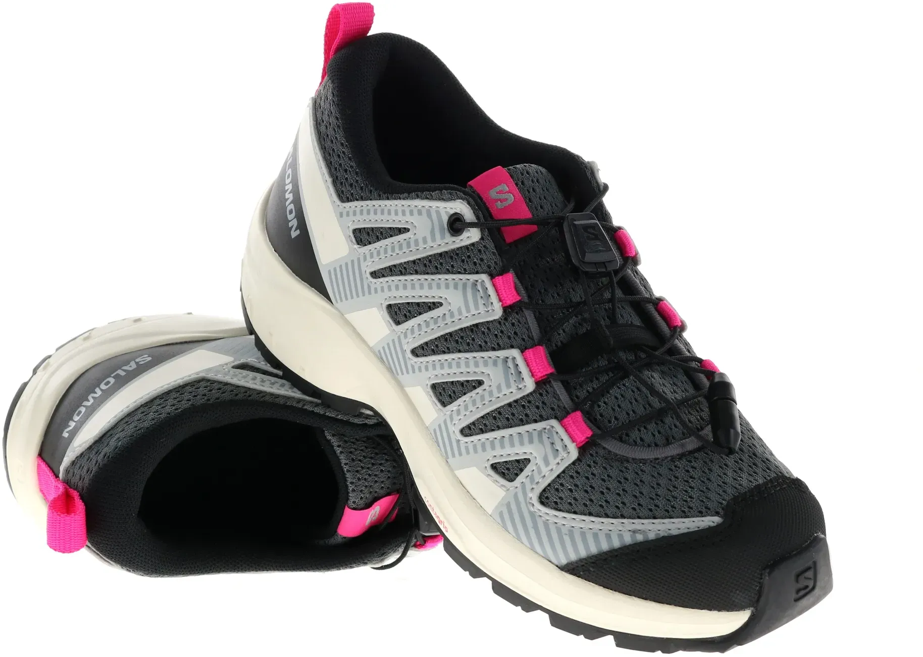 Schuhe Mode - - Bei den ersten Outdoor-Erfahrungen sind die Kids mit den Wanderschuhen von Salomon gut ausgestattet. Der Schuh hat einen niedrigen Schaft und eine runde Spitze sowie einen Schnellverschluss. Der Vorteil liegt auf der Hand: Das An- und Ausziehen geht ganz schnell und leicht. Es gibt keine Schnürsenkel, die unterwegs aufgehen und die Gefahr irgendwo hängenzubleiben wird reduziert. Die Sohle ist profiliert, womit die Gefahr auszurutschen reduziert wird. Beim Innenmaterial wurde atmungsaktiver Textil verwendet — für eine gute Feuchtigkeitsregulierung und ein angenehmes Trageklima. Getragen mit einer Trekking-Hose mit abzippbaren Hosenbeinen und einer Outdoorjacke steht einer aufregenden Zeit in der Natur nichts mehr im Weg., Maßangaben: Größenhinweis: Fällt klein aus, bitte eine Größe größer bestellen., Farbe: Farbe: Black / White / French Blue, Material: Obermaterial: Synthetik, Textil, Obermaterialeigenschaften: wasserdicht, Innenmaterial: Textil, Innenmaterialeigenschaften: atmungsaktiv, Optik/Stil: Stil: sportlich, Details: Besondere Merkmale: wasserdicht, Verschluss: Schnellverschluss, Schuhspitze: rund, Sohle: Laufsohlenmaterial: Gummi, Laufsohlenprofil: profiliert, Passform/Schnitt: Schuhhöhe: niedrig, Sportartdetails: Sportart: Wandern, - Google-Altersgruppe: Erwachsene - Versandkostenfrei: false - Sale: true - Google-Geschlecht: unisex - Lieferzeit: 3 Tage - Schuhgröße (EU): 35 39 - Sofort verfügbar: true - Für wen: Unisex - Größe: 39 35 - ... Für 61.70 Euro erhalten Sie hier einen Multisportschuh für Junioren in einer ansprechenden Farbe. ![]() Salomon - XA Pro V8 Junior - Multisportschuhe 28 | EU 28 rosa