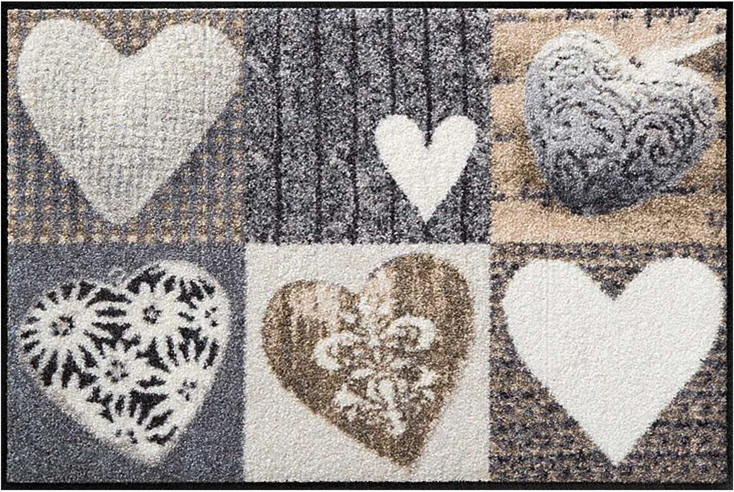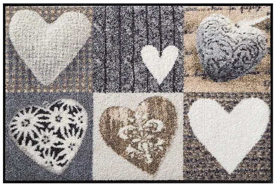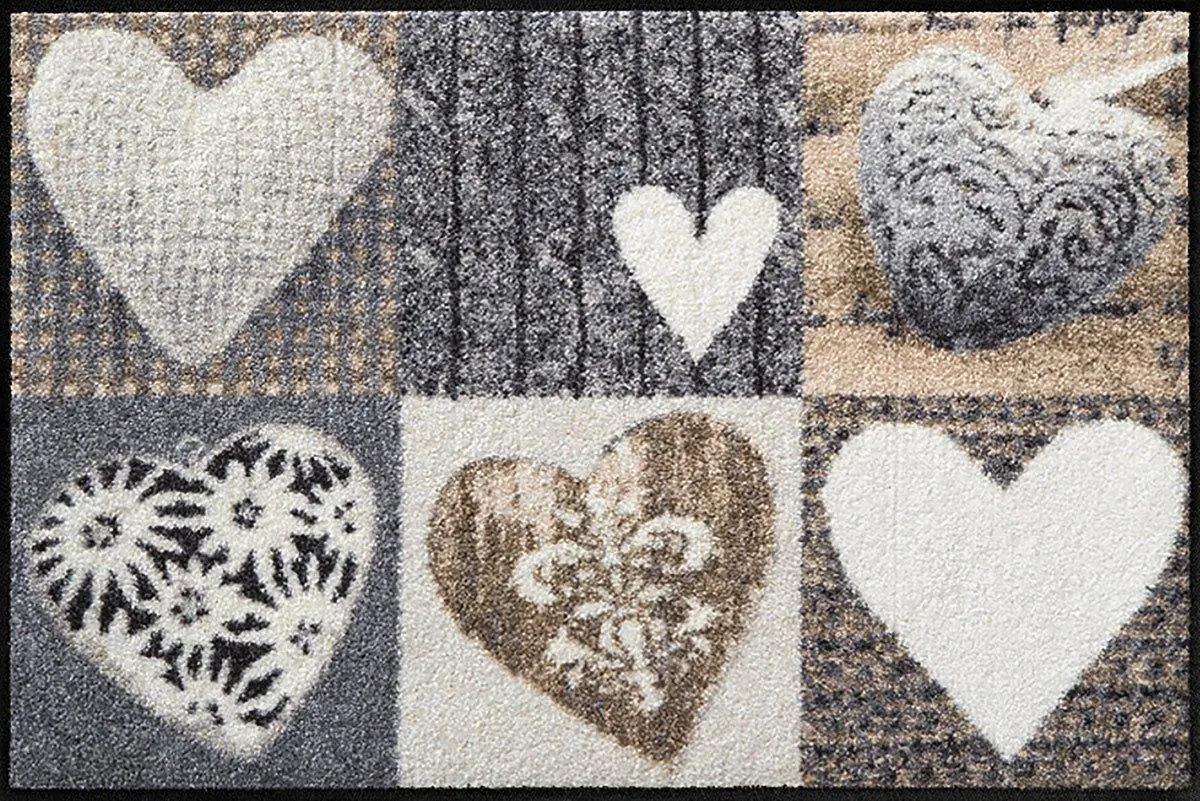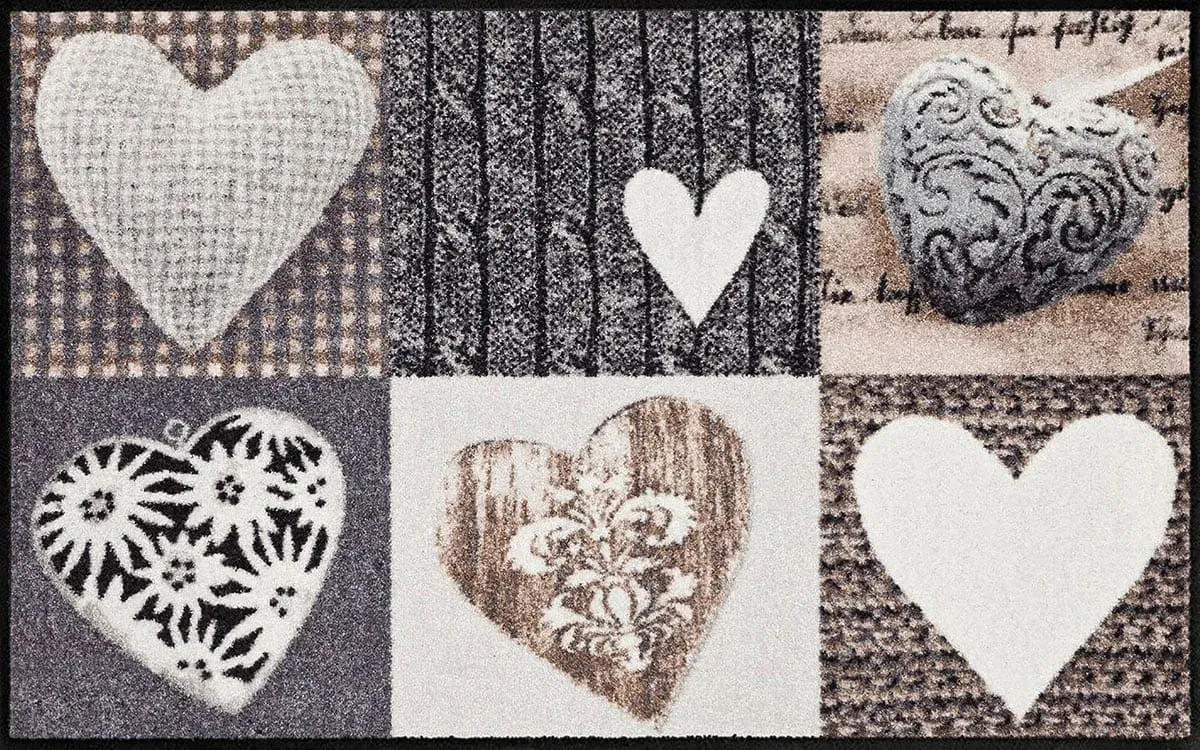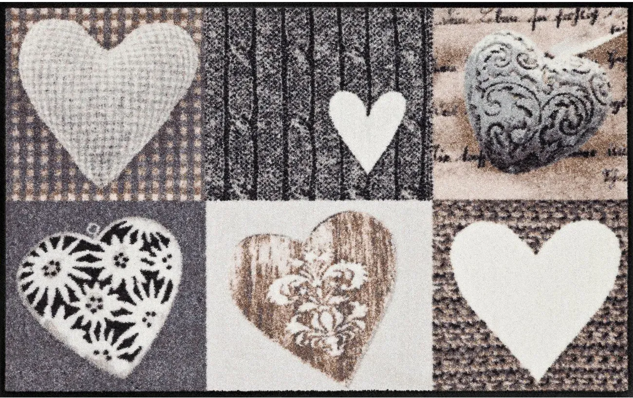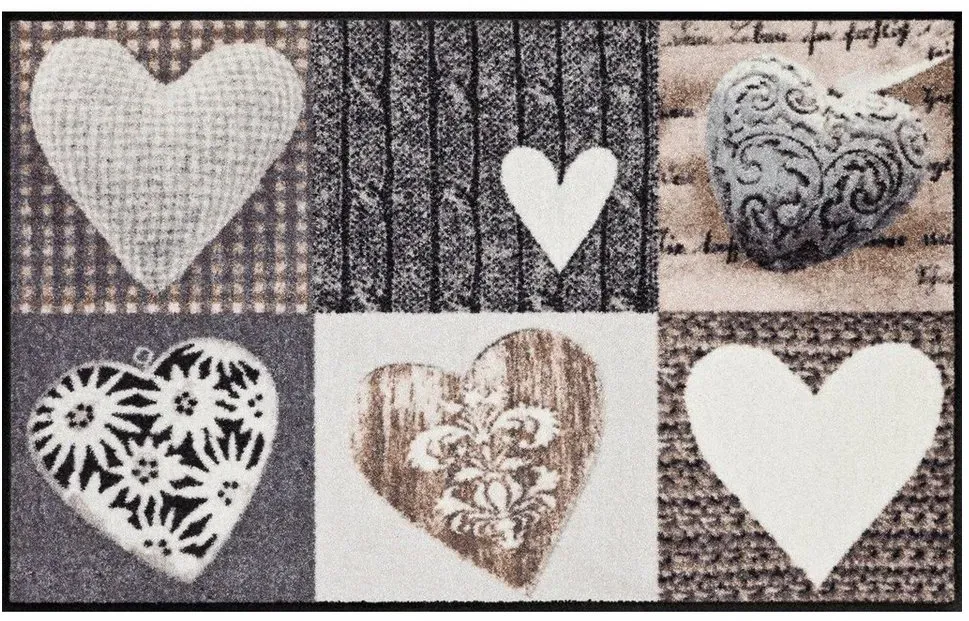 lieferbar-in 3-4 Werktagen bei dirSalonloewe Fußmatte Fußmatte "Alpenglück Herzen", eckig, Höhe: 7 mm, Motiv beige|grau 50 cm x 75 cm x 7 mm
