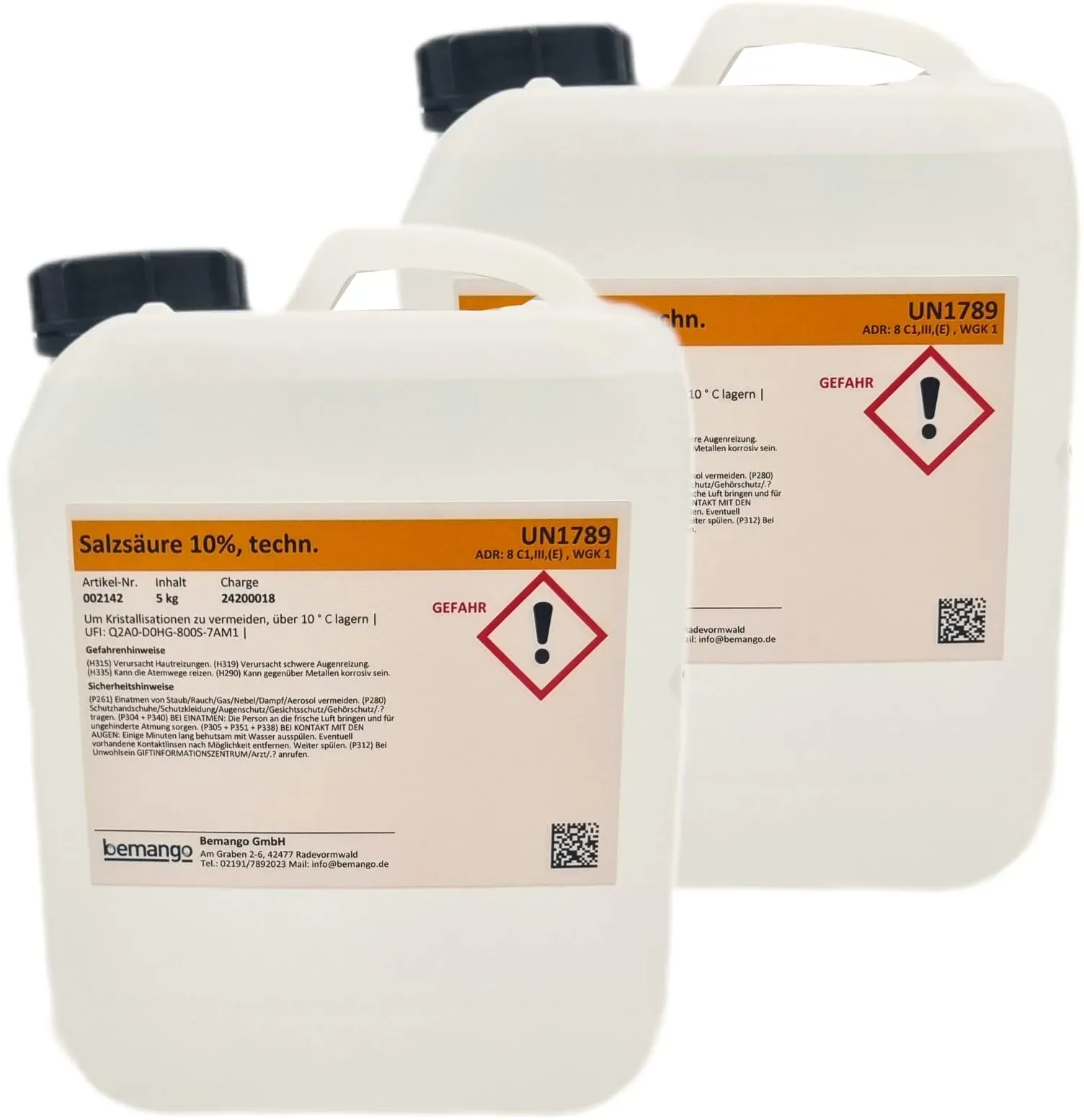 Gewöhnlich versandfertig in 2 bis 3 TagenBemango Salzsäure 10% technisch 2x5 Liter = 10 Kg UN1789