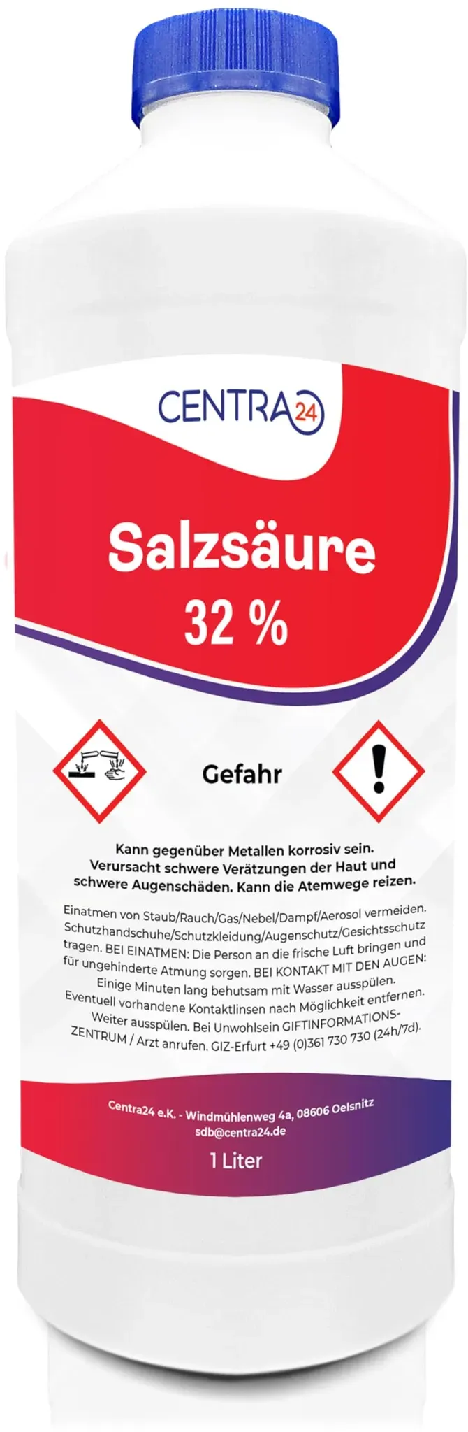 Auf Lager Versand durch AmazonCentra24 Salzsäure 32% 1 Liter, Chlorwasserstoffsäure, Reinigung, Allzweckreiniger, Labor, Experiment, HCl