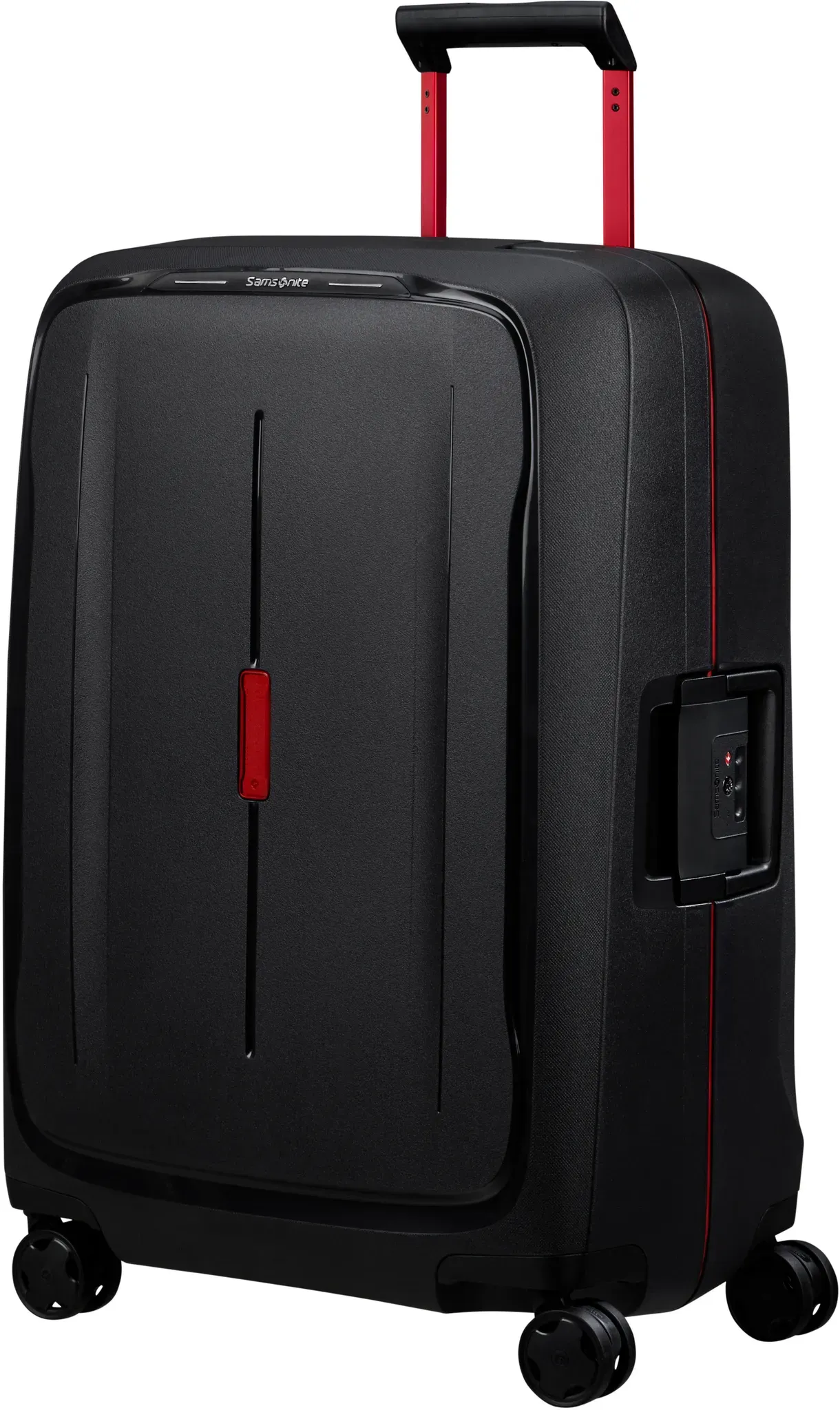 Kategorie: Trolleys - Samsonite - GTIN:5400520211163 - Größenindex: M Außen: Hartschale vorn das Logo ein Tragegriff oben und einer an der Seite mit einem fest installiertem TSA-Zahlenschloss mit arretierbarer Teleskopstange vier 360 drehbare Leichtlaufrollen Besonderheiten: Begrenzte 5 jährige globale Außenhülle: hergestellt aus mindestens 70 % recyceltem Polypropylen 3-Punkt-Verschluss-System mit TSA008-Schloss Räder mit stoßdämpfender und geräuschreduzierender Federung Einziehbarer Identifikations-/Adressanhänger Dichtung, die das Eindringen von Wasser verringert Bodenfach und Oberes Fach 2 Gepäckorganizer: Voluminös, herausnehmbar und von Hand waschbar, mit zwei Tragegriffen Maße Tiefe: 30 cm Höhe: 69 cm Breite: 49 cm Gewicht: 3.7 ... - 219,00 Euro bei Taschenparadies - gefunden von billiger.de Dieser mittelgroße Samsonite Essens Trolley in Charcoal/Red ist mit 219 Euro ein gutes Angebot für eine stilvolle Reise. ![]() ![]() Samsonite ESSENS Trolley M, Charcoal/Red