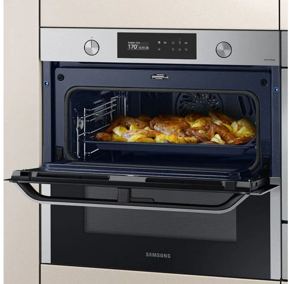 Zustand: Neu - Top Brands Kitchen Appliances - Samsung - NV7B4550VAB/U1 - EAN: 8806094685657 - Dual Cook Flex: 2 voneinander getrennte Garräume mit je 1.200 Watt, Zur gleichzeitigen Zubereitung unterschiedlicher Speisen mit unterschiedlichen Temperaturen und Garzeiten SmartThings App¹ mit Sprachsteuerung: Steuerung sämtlicher Einstellungen per Smartphone oder Tablet, Automatische Benachrichtigung nach Beendigung des Aufheiz- oder Backvorgangs Natural Steam: zum Dampfgaren einfach Backform mit etwas Wasser auf den Boden des Backofens stellen - für innen saftige und außen knusprige Speisen Pyrolytische Selbstreinigung: Reinigung im Handumdrehen ohne anstrengendes Schrubben oder Reinigungsmitteln dank Erhitzung des Ofens auf ein hohe Temperatur Lieferumfang: 1 x Samsung NV7B4550VAB/U1 Einbau-Backofen mit Pyrolyse und Teleskopauszug, 76 l, EEK: A+, Backblech, Gitterrost, Einschiebegitter, Dampfschale, Maße (BxHxT): 59,5 x 59,6 x 57,1 cm - bei Amazon.de Dieses Modell der Serie 4 bietet eine gute Balance aus Preis und Funktionen, inklusive 76 Liter Garraum. ![]() ![]() SAMSUNG NV7B45502AK/U1 Dual Cook Flex, Einbaubackofen (Einbaugerät, 76 l, 595 mm breit), Serie 4