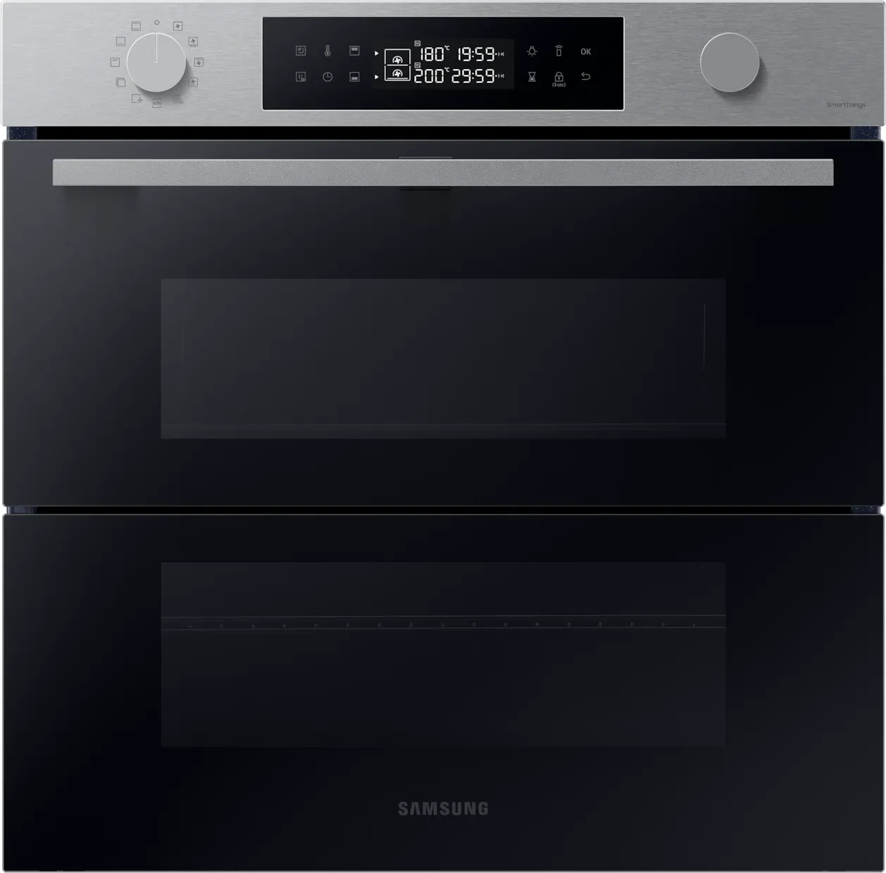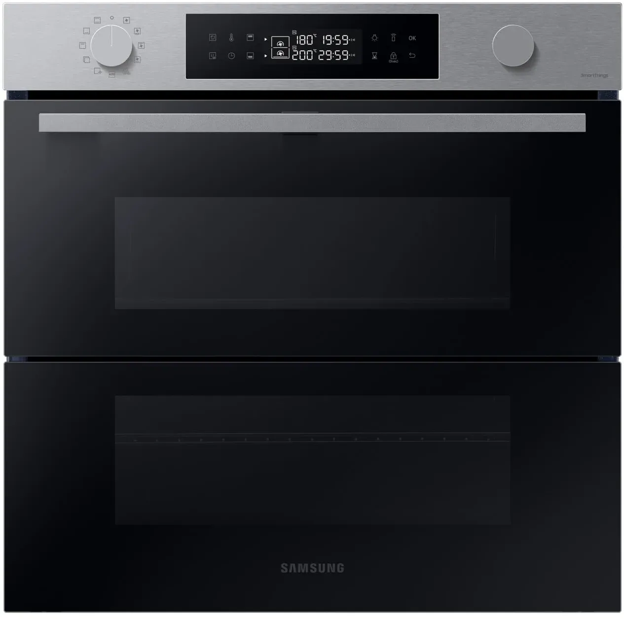 EEK: A+ - Kategorie: Backöfen - Samsung - GTIN:8806094337426 - Dual Cook FlexTM Ein Ofen. Zwei Garräume. Maximale Flexibilität. Die raffinierte und praktische Kombination aus zwei Heißluftsystemen mit je 1.200 Watt, zwei Ventilatoren und einem Garraumteiler in der Mitte ermöglicht es dir, unterschiedliche Speisen gleichzeitig zuzubereiten - auch mit unterschiedlichen Betriebsarten, Temperaturen und Garzeiten. Das Gargut im oberen Teil des Ofens kann jederzeit kontrolliert und nachgesehen werden ohne den unteren Teil des Ofens öffnen zu müssen. Fisch und Kuchen können zur selben Zeit im Ofen zubereitet werden, ohne dass sich Geruch oder Geschmack in den anderen Garraum übertragen. Pyrolytische Selbstreinigung Reinigung im Handumdrehen Die pyrolytische Selbstreinigung hilft dir dabei den Backofen zu reinigen denn anstrengendes Schrubben oder verschiedene Reinigungsmittel will keiner. Bei hoher Temperatur zerfallen Verschmutzungen oder Rückstände. Danach kann der Backofen einfach mit einem feuchten Tuch ausgewischt werden. SmartThings Cooking Machen Sie Ihr Küchenerlebnis noch angenehmer. Mit der SmartThings Cooking App sparen Sie Zeit und können so den Aufwand für das Kochen minimieren. Da der Backofen Ihre Bedürfnisse versteht, empfiehlt er personalisierte Rezepte und erstellt einen wöchentlichen Essensplan. Außerdem bietet es ein geführtes Kocherlebnis und ermöglicht müheloses Einkaufen von Lebensmitteln. Air Sous Vide Garen Sie Ihre Speisen gleichmäßiger, ohne dass sie ... Ein beliebtes Modell der Serie 5 mit Teleskopauszug und Pyrolyse-Selbstreinigung. ![]() ![]()