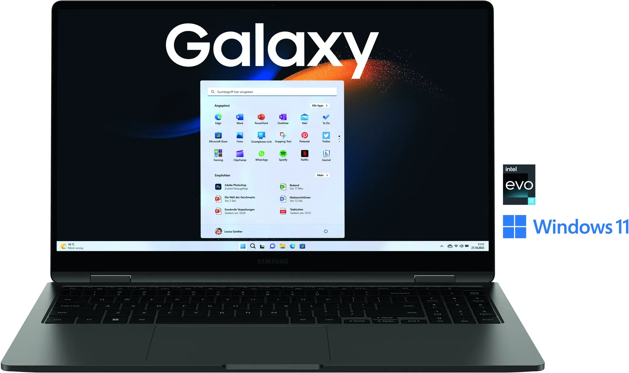 Kategorie: Notebooks - Samsung - GTIN:8806094883718 - The new way to PC Man muss sich nicht mehr für eins entscheiden und kann einfach beides haben: Das Galaxy Book3 360 vereint praktisch ein Notebook und ein Tablet in einem Gerät. Damit kannst du je nach Situation entscheiden, ob du den Komfort eines Notebooks mit Tastatur oder die Flexibilität eines Tablets für deine Aufgaben oder dein Entertainment nutzen möchtest. Das helle und touchfähige Display lässt sich dank 360 Grad -Scharnier jederzeit komplett umklappen. Ob als Notebook oder Tablet: Das schlanke Leichtgewicht ist ein idealer Wegbegleiter, der dir im mobilen Alltag stundenlang mit jeder Menge Power zur Seite steht. Mit dem fortschrittlichen Flagship-Prozessor sind selbst intensive Arbeitsbelastungen wie Multitasking oder Bild- und Videobearbeitung keine Herausforderung. Eine schnelle Wi-Fi 6-Konnektivität und vielseitige Anschlussmöglichkeiten runden die Alltagstauglichkeit ab. Die Vernetzung mit deinem Galaxy Smartphone oder Tab für übertragung von Daten, werden dank nahtlosem Zusammenspiel mit dem Galaxy Ecosystem kinderleicht. Highlights - Vielseitig & flexibel Notebook und Tablet in einem dank 360 Grad AMOLED-Display - Eindrucksvolle Performance Leistungsstarker Intel Core i5 Prozessor der 13. Generation - Bereit für die Langstrecke starker Akku für bis zu 20 Stunden mit leichtem Schnellladegerät - Galaxy Ecosystem einfacher Datenaustausch zwischen deinen Samsung Galaxy Geräten - 8 GB RAM und 256 GB interner ... Ein weiteres attraktives Angebot für das 13-Zoll Galaxy Book3 360 mit i5 Prozessor und 8GB RAM, ideal für den täglichen Gebrauch. ![]() ![]() Samsung Galaxy Book3 360, Schwarz, 13 Zoll, Intel Core i5-1340P, 8GB, 256GB SSD
