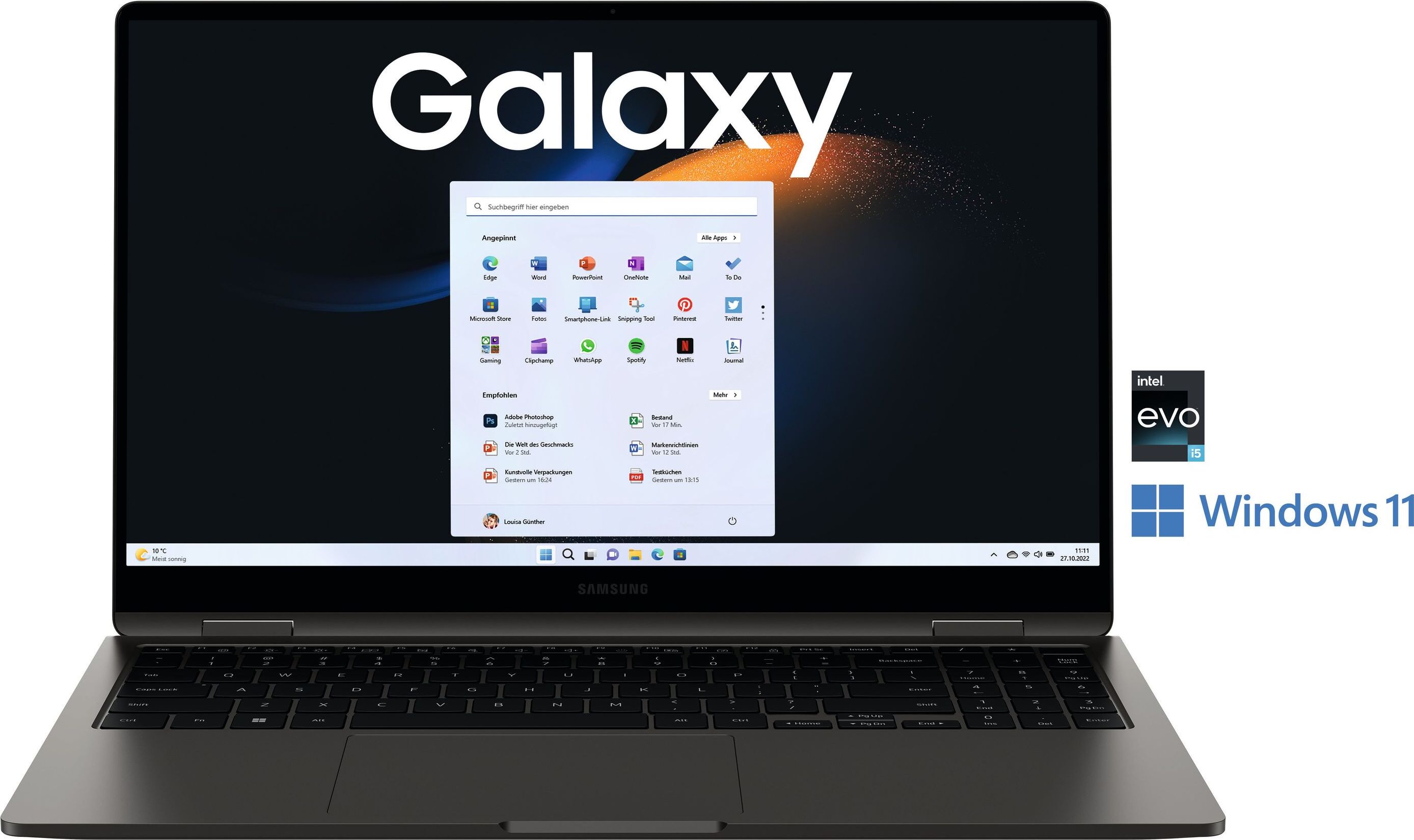 Auf Lager Versand durch AmazonSamsung Galaxy Book3 360 Laptop, 13" Full HD 60Hz Display, TOUCHSCREEN, AMOLED, Intel Core i7-1360P, 16GB RAM, 512GB SSD, Windows 11, QWERTZ Tastatur, Graphite, Inklusive 36 Monate Herstellergarantie