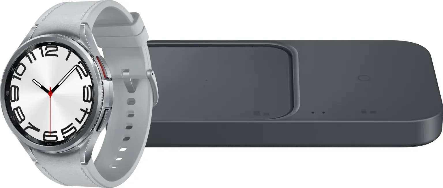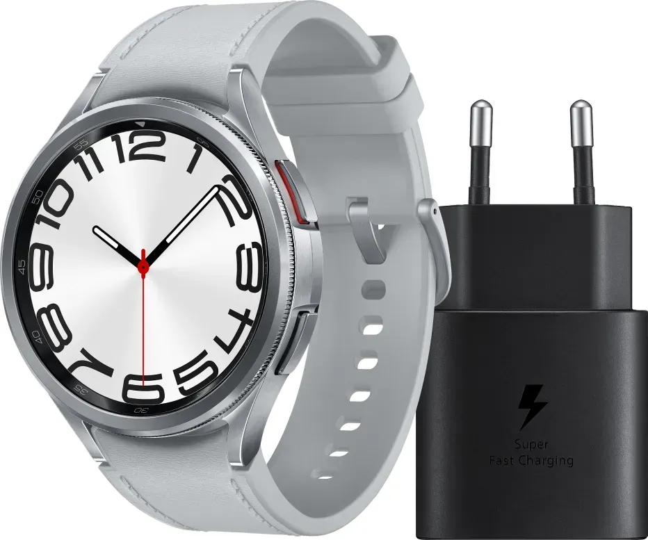 Samsung Samsung Galaxy Watch 6 Smartwatches - EAN:8806095076225 - GEWÄHRLEISTUNG, Lieferung in 1-2 Werktagen /// ZUSTAND: Technisch einwandfrei, optisch top gepflegt und ideal zum Verschenken. Unsere Kunden sind regelmäßig positiv beeindruckt ... LIEFERUMFANG: Samsung Galaxy Watch 6 Classic [WiFi + LTE, inkl. Kunstlederarmband silber] 43mm Edelstahlgehäuse silber, Ladekabel, Armband, Anleitung, OVP /// Sie erhalten die Rechnung auf Ihren Namen (die MwSt. ist nach Paragraph §25a des UStG. nicht ausweisbar) /// Sie bestellen bei einem deutschen Händler. Yoused beliefert auch DHL-Packstationen. - gefunden von Kelkoo Dieses Angebot beinhaltet die 47mm Silber-Version zusammen mit einem Samsung Ladegerät, was einen Mehrwert darstellt. ![]() ![]() Samsung Galaxy Watch6 Classic Silber 47mm + Samsung Ladegerät