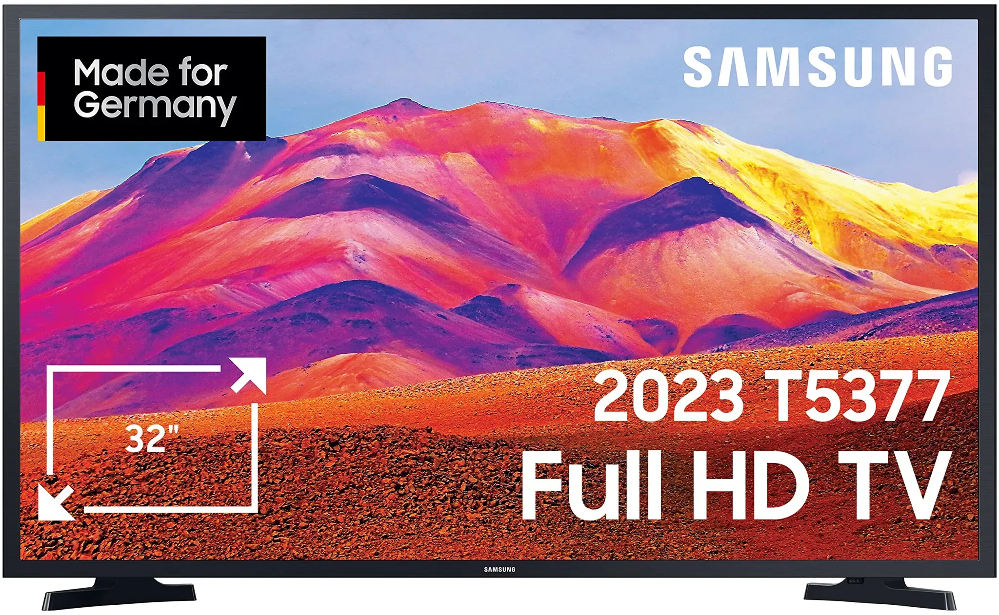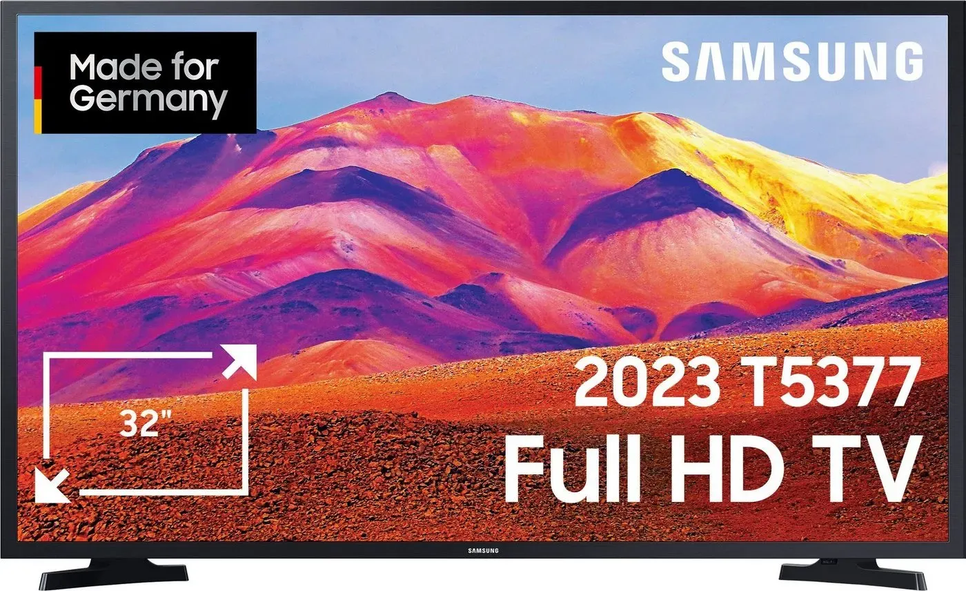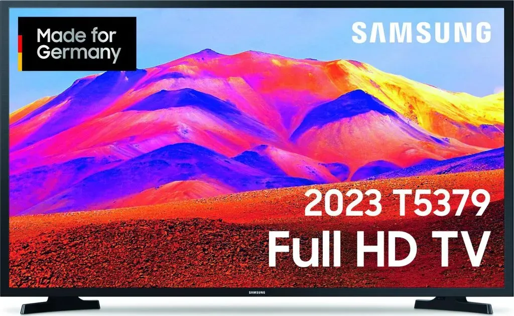 EEK: G - Kategorie: Fernseher - Samsung - GTIN:8806094906264 - Klarer sehen als je zuvor Full HD-Auflösung Dank der reichen und lebendigen Full HD-Auflösung, die dir das Doppelte an Auflösung als ein herkömmlicher HD-TV bietet, hast du das Gefühl, Teil deiner Lieblingsshows und -filme zu sein. Eine einzige Fernbedienung für alle Inhalte Smart Hub & One Remote Die schlanke und handliche One Remote Fernbedienung macht es ganz einfach, jede Menge unterschiedlicher Inhalte schnell an einem Ort zu finden und auszuwählen egal ob auf der Set-Top-Box, der Spielkonsole, vom Live-TV oder in deinen Apps. Beeindruckende Details HDR HDR sorgt für einen umfangreichen Kontrastumfang. Das führt zu einem Bild, das mit einem sehr breiten Farbund einer riesigen Detailfülle glänzt in sehr hellen genauso wie in komplett dunklen Szenen. Farben, die dich in den Bann ziehen PurColor PurColor versetzt dich fast schon mitten in die Szene. Mit PurColor kann der TV ein beeindruckendes Farbwiedergeben und eine brillante Bildqualität generieren. Freue dich darauf, in die Inhalte eintauchen zu können. Home Office im grossen Stil Remote Access Erledige deine Arbeit jetzt auf deinem grossen TV-Bildschirm, indem du über die Remote Access-Funktion ganz einfach kabellos die Inhalte deines Laptops auf den TV überträgst. Mit Microsoft Office 365 hast du Zugriff auf deine Dateien oder Dokumente und zwar gemütlich von deinem Sofa aus. Zahlreiche Details für klare Bilder Ultra Clean View Mit Ultra Clean View ... ![]() ![]() Samsung T5379CD 32 Zoll LED-Fernseher (GU32T5379CDXZG, Deutsches Modell), HDR, PurColor, PQI 1000 [2023]