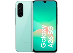 70 Händlerangebote bei billiger.de - EEK: C - Kategorie: Handys ohne Vertrag - Samsung - Kostenlose verlängerung auf 30 Monate (2, ) - gültig für Kunden, die ihren Wohnsitz in Deutschland haben. 18 Awesome Intelligence: Kreise mit Circle to Search Texte oder Objekte ein, um Suchergebnisse zu erhalten, Erkenne und entferne mit dem Objektradierer Personen im Bildhintergrund, Erzeuge mithilfe von Filtern beeindruckende Fotoeffekte 1 2 3 4 5 Design: Das Galaxy A26 5G Smartphone ist schlank, schimmernd und stylish, Das dünne Gehäuse des Handys passt bequem in deine Hand, während die glänzende Glasrückseite und das aufgeräumte Kamera-Layout alle Blicke auf sich ziehen Display: Das lebendig klare, 16,91 cm/6,7' große Super AMOLED-Display mit dünnem, minimalistischem Rahmen lässt dich in deine Lieblingsunterhaltung eintauchen - von Videos von Content Creator*innen bis hin zu Fotos deiner Familie und Freunde 1 7 Akku: Genieße Film-Marathons und schaue dir deine Lieblingsserie dank des 5.000-mAh-Akkus für bis zu 17 Stunden auf dem Galaxy A26 5G an, ohne zwischendurch aufladen zu müssen 1 8 9 - GTIN:8806097072829 Das Samsung Galaxy A26 5G in Mint ist eine attraktive Option im mittleren Preissegment mit 128 GB Speicher. ![]() ![]() SAMSUNG Smartphone 'Galaxy-A26 5G - 128GB', grün (mint), 128 GB, Mobiltelefone, Smartphone, Topseller