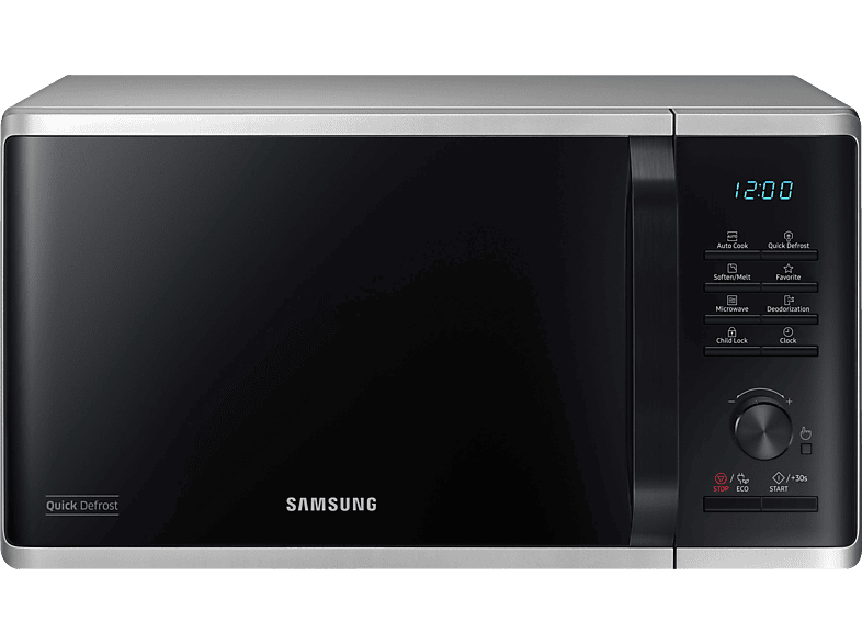 Kategorie: Mikrowellen - Samsung - GTIN:8806094785630 - Quick Defrost Auftauprogramme schnell und schonend auftauen Die Auftauprogramme ermöglichen das schnelle und gleichmäßige Auftauen von Lebensmitteln, sodass deren ursprüngliche Frische und Konsistenz erhalten bleibt. Genieße Fleisch, Geflügel, Fisch, Brot, Kuchen und Früchte, die schmecken, als kämen sie frisch vom Markt und das jederzeit. Kratzfester Keramik-Emaille-Innenraum besonders leicht zu reinigen Leicht zu reinigen: Von den außergewöhnlich glatten Innenwänden des mit Keramik emaillierten Innenraums lassen sich Fett und öl problemlos abwischen. Alles, was du dafür brauchst, ist ein feuchtes Tuch. Zudem ist die Keramik-Emaille äußerst langlebig und hält einiges aus daher werden Kratzer und Verfärbungen auch intensiver Nutzung verhindert. Als widerstandsfähig erweisen sich die Innenwände dank antibakterieller Beschichtung auch gegenüber ansonsten hartnäckigen Gerüchen. Automatikprogramme gesünder Garen und Erwärmen Die Vielzahl an Automatikprogrammen macht die Zubereitung Ihrer Lieblingsspeisen noch einfacher und bequemer. Die Automatikprogramme sind optimiert für frische und rohe Lebensmittel, so dass du sicher sein kannst, jeweils die schonendste und damit gesündeste Zubereitungsart zu wählen. Eco Mode Strom sparen im Standby-Modus Auch wenn sie gerade nicht genutzt werden, verbrauchen Mikrowellen Strom. Mit der Einstellung ECO Modus wird der Stromverbrauch von Samsung Mikrowellen erheblich verringert. Das ... ![]() SAMSUNG MS23B3515AS/EN, Mikrowelle (800 Watt)