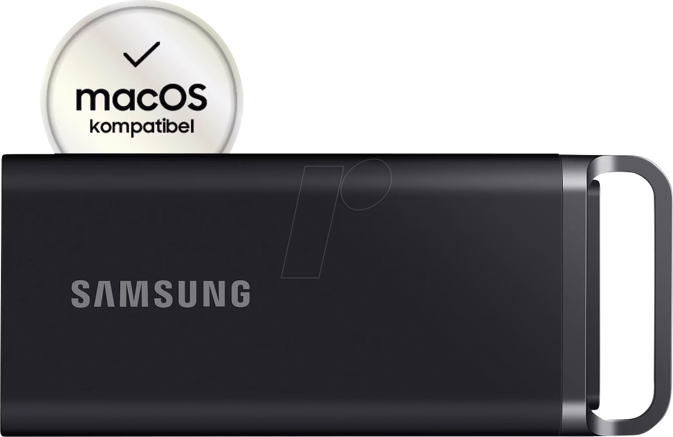 Samsung - EAN: 8806094905403 - überzeugend vielseitig Das Leben bietet dir viele Möglichkeiten. Mit der vielseitig kompatiblen Portable SSD T5 EVO kannst du beim Arbeiten, Erstellen von Inhalten, Lernen, Spielen oder auf der Suche nach Inspirationen immer einen Schritt voraus sein. Sichere dir überzeugende Leistung, enorme Kapazitäten von bis zu 8 TB und den Schutz deiner Daten. So einfach geht produktiv Mit sequenziellen Lese- und Schreibgeschwindigkeiten von bis zu 460 MB/s überträgt die T5 EVO auch große Dateien schnell und konstant im Vergleich zu externen Festplatten. Sie wurde entwickelt, damit du jederzeit produktiv sein kannst. Bereit für große Datenmengen Mit Speicherkapazitäten von bis zu 8 TB eignet sich die T5 EVO für ein breites Spektrum an Einsatzmöglichkeiten. Ob du arbeitest, kreativ bist, lernst, spielst oder Back-ups erstellst: Die Portable SSD bietet die passende Größe für deine Anforderungen. Halte deine Daten fest im Griff Passt genau in deine Hand. Das robuste Metallgehäuse mit gummierter Oberfläche verfügt oben über einen Metallgriff, an der du die T5 EVO sicher greifen oder unterwegs an deiner Tasche anbringen kannst. Die T5 EVO schützt deine Daten auch dann, wenn sie versehentlich aus bis zu zwei Metern Höhe fallen gelassen wird. Bleibt cool, wenn es hoch hergeht Sicher im Einsatz ohne überhitzung. Das fortschrittliche Temperaturmanagement der T5 EVO nutzt die Dynamic Thermal Guard-Technologie. Diese sorgt dafür, dass die T5 EVO nicht unangenehm ... ![]() ![]() Samsung Portable SSD T5 EVO, 2 TB, USB 3.2 Gen. 1, 460 MB/s Lesen, 460 MB/s Schreiben, Externe Festplatte für Mac, PC, Android, Smart TVs und Spielkonsolen, Inkl. USB-C-Kabel, MU-PH2T0S/EU