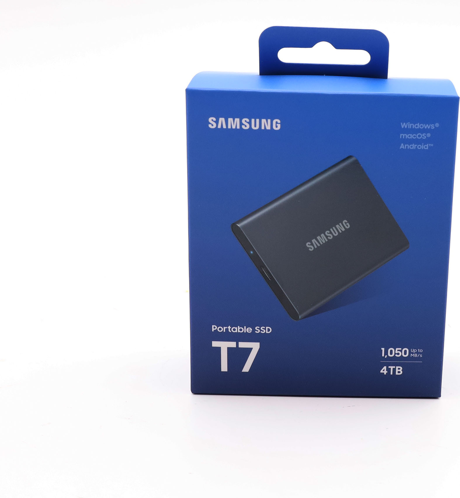 Zustand: Gebraucht - Top Brands Tech Computer Components - Samsung - MU-PC4T0T/WW - EAN: 8806095423593 - Dein externer Highspeed-Speicher als Backup-SSD zur Datensicherung im kompakten Hosentaschenformat und mit Kapazitäten von bis zu 4 TB¹ Dank USB 3.2 Gen.2 bis zu 9,5 Mal schneller als externe HDD-Festplatten², Mit Lese-/Schreibgeschwindigkeiten von bis zu 1.050 MB/s bzw. 1.000 MB/s³ für ein gleichzeitiges Aufnehmen und Speichern von 4K-Aufnahmen Kompaktes, robustes Aluminium-Gehäuse, Inkl. 2 USB-Kabeln (USB-C auf C und USB-C auf A) zur Verbindung der externen Samsung SSD mit PC, Mac, MacBook Air, ab iPhone 15, Android-Geräten, Smart TVs und Spielekonsolen´ Sicherheit für deine Daten dank Schutz vor Stürzen aus bis zu 2 m Höheµ, Auf Wunsch per Passwort durch AES-256-Bit-Hardwareverschlüsselung verschlüsselbar Die kostenlose Samsung Magician Software optimiert für dich die Leistungsfähigkeit und hält das Laufwerk mit Updates immer auf dem neuesten Stand¶ · Lieferumfang: 1 x Samsung MU-PC4T0T/WW Portable SSD T7, SSD 4 TB, Externe Festplatte, 2 USB-Kabel (Typ-C auf C und Typ-C auf A, USB 3.2 Gen.2), Grau - 8 Händler im amazon.de Marketplace ![]() ![]() Samsung Portable SSD T7 4 TB USB 3.2 grau