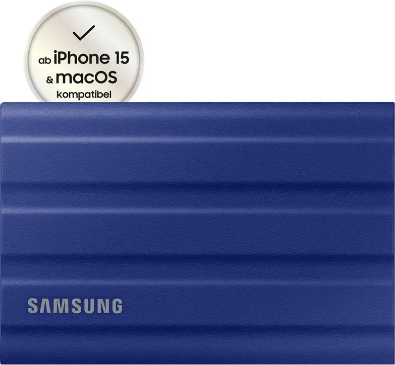 EAN: 8806092968424 - 1 TB (V-NAND mit NVMe) Maximale Lese-/Schreibgeschwindigkeit: 1.050 MB/s / 1.000 MB/s Stoßfestes Gummi-Gehäuse mit verstärkendem Innenrahmen USB 3.2 Gen 2, abwärtskompatibel zu USB 3.0/ 2.0 - bei cyberport.de - aus Yadore Produktdaten Die 1 TB Version in Blau für 119 Euro direkt von Samsung DE ist eine solide Wahl mit Herstellergarantie. ![]() ![]() Samsung Portable SSD T7 Shield USB 3.2 Gen 2 - 1 TB 1 TB Blue